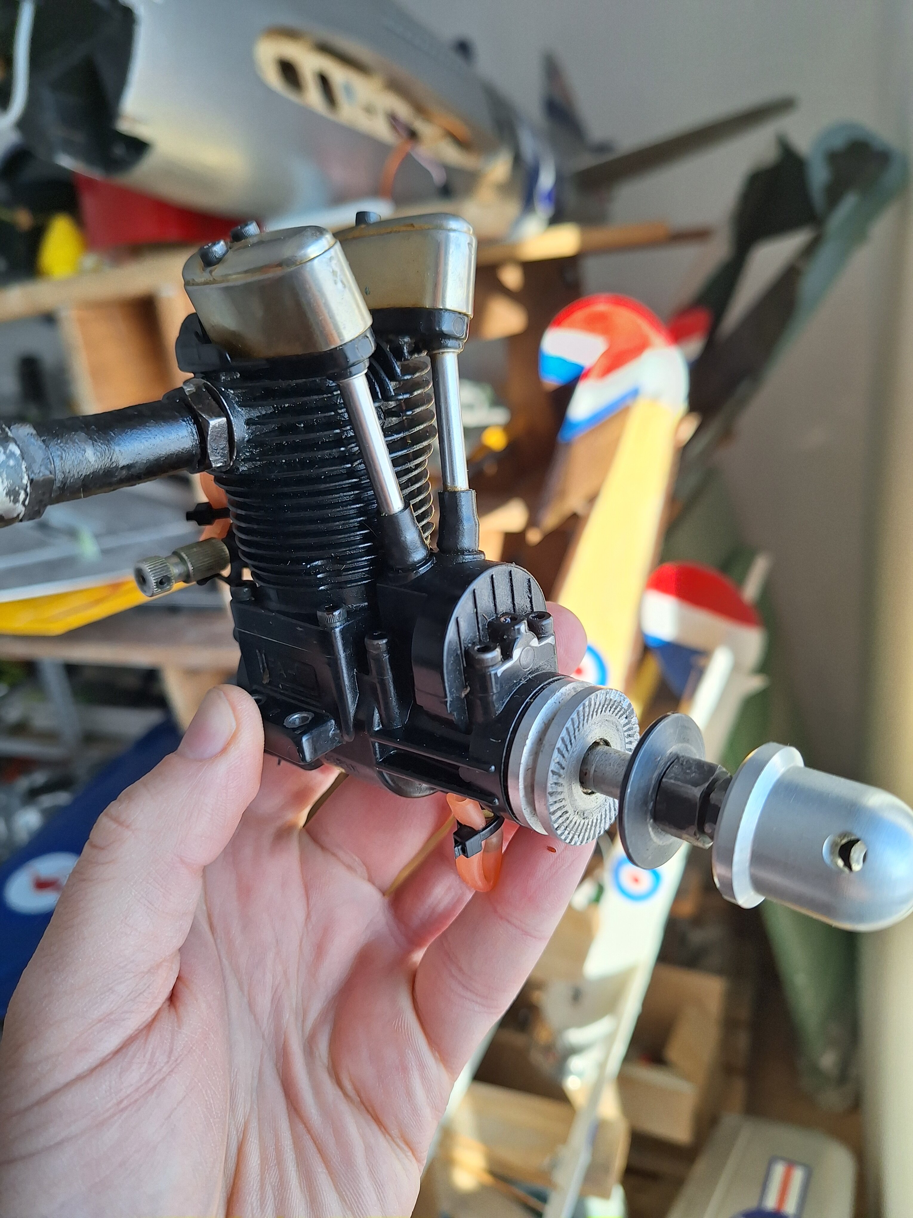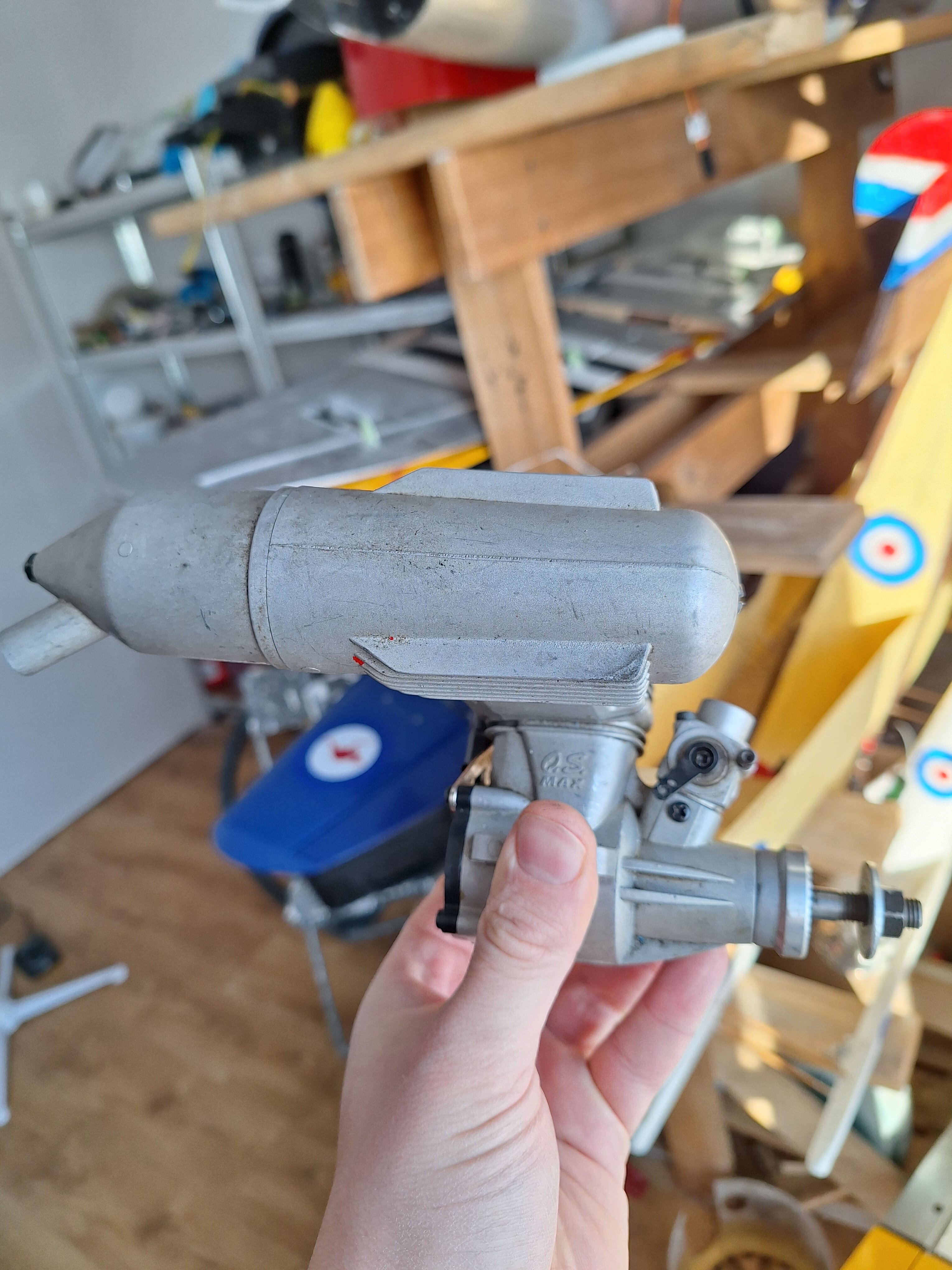 Miałem chwilę czasu dzisiaj wiec odpaliłem enye zamontowana pionowa i powiem tyle ze ja chyba wymiękam. Odkręciłem iglice wysokich obrotow o 5 obrotow I dodałem gaz na full. Obroty zmierzone około 5600. Powoli skręcałem i mierzyłem. Przy 3 obrotach wykrecenia iglicy obroty osiagnely max czyli jakies 7400. Przy jakis 2,5 obrotow wykręcenia iglicy prędkość sie juz nie zmieniła a silnik juz zdechl czyli osiągnąłem skrajna pozycję. Śruba wolnych obrotow cały czas wykręcona o okolo 1,5 obrotu. Przy czym silnik co drugie odpalenie kopie tak ze trzeba ponownie dokręcać smiglo. Przy włączonym zarzeniu obrotu wzrastają i praca jest bardziej stabilna a przy wyłączonym zarzeniu czuć ze praca nie jest stabilna, czasami słychać jak na wysokich obrotach delikatnie faluje a na wolnych obrotach bardzo łatwo gasnie. Niby chodzi ale trochę strach na takim latac bo czasem tez ot tak sobie z gasnie. Jak ktos ma jeszcze jakieś pomysły co mlze byc przyczyną ze silnik dalej kopie czyli najpewniej dalej jest zalewany to chetnie wyslucham. ponizej zdjecie mojej enya na stanowisku testowym.