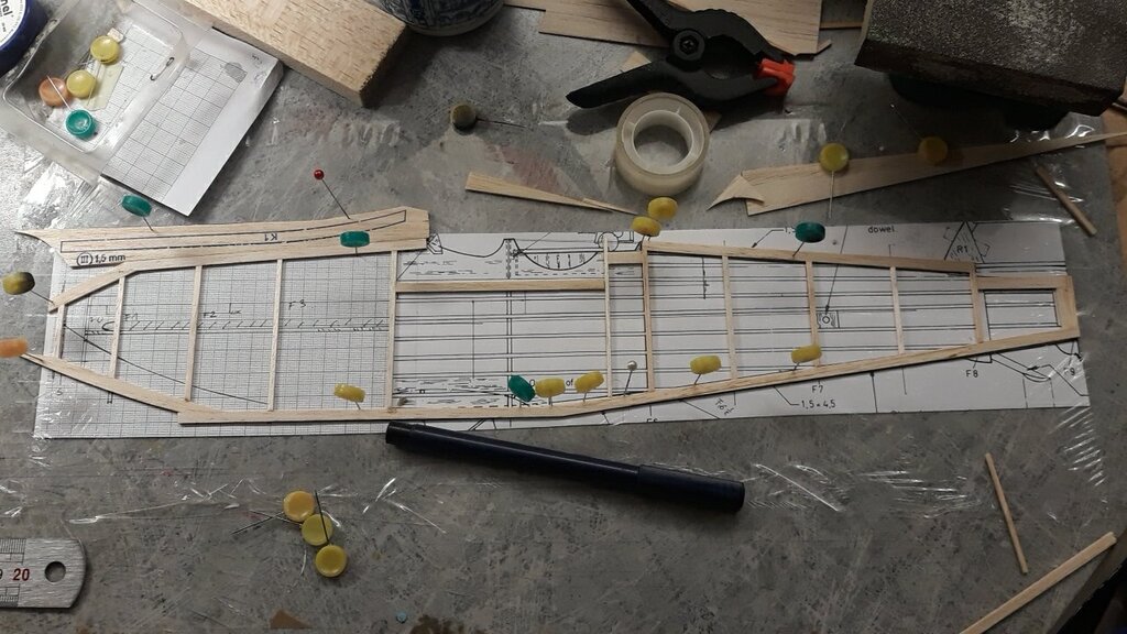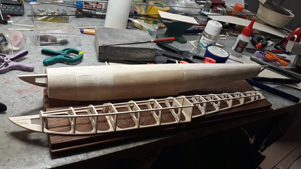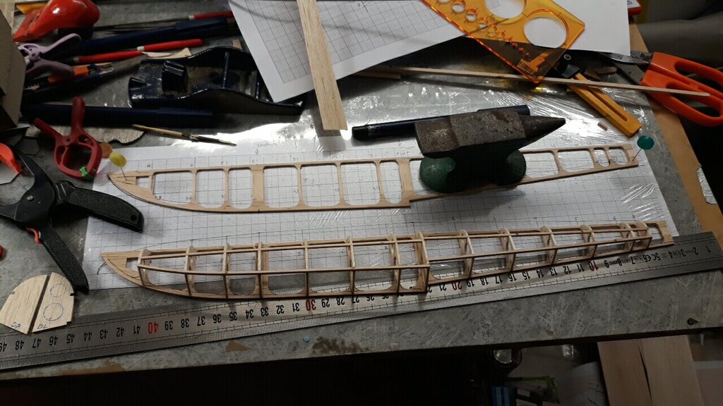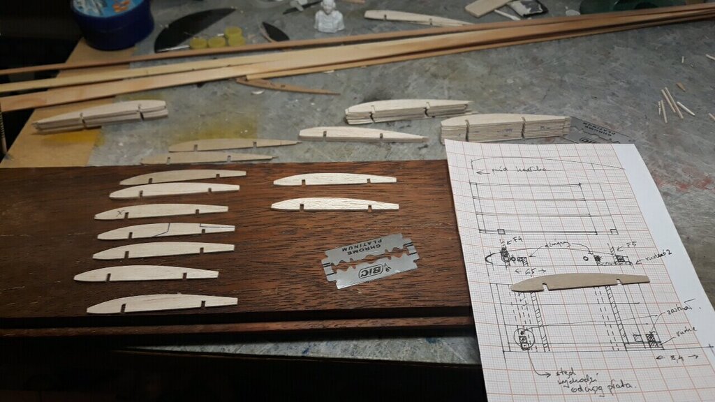 Dobry wieczór, Idzie bardzo wolno, mam nadzieję że druga połowa kadłuba pójdzie szybciej. W końcu zmieniłem wszystkie wręgi, układ podłużnic etc. No i tak to jest jak się buduje z kita i zacznie przeróbki....;) Cdn Pzdr, M
