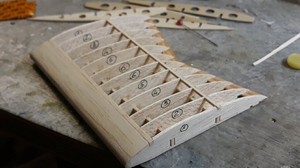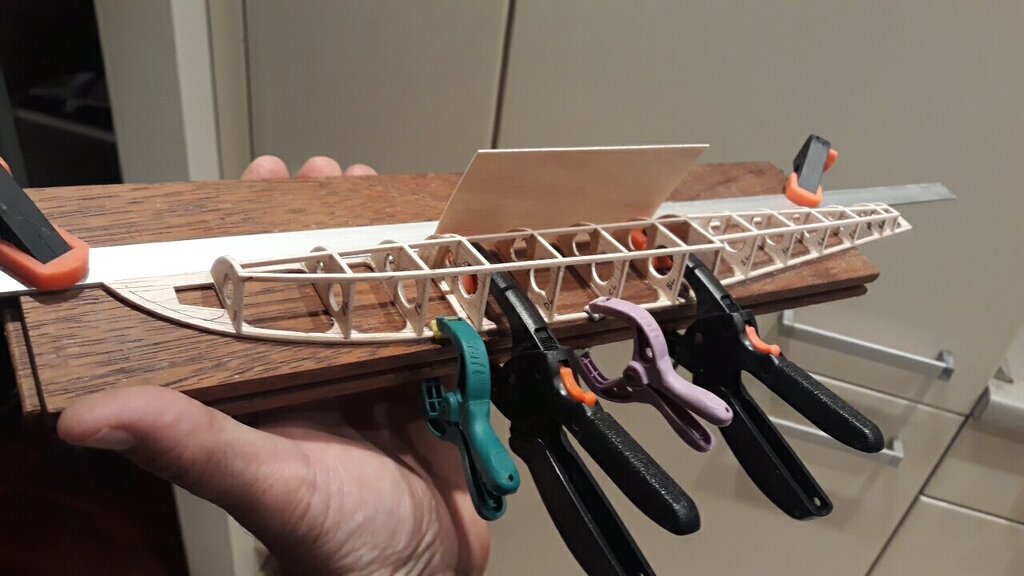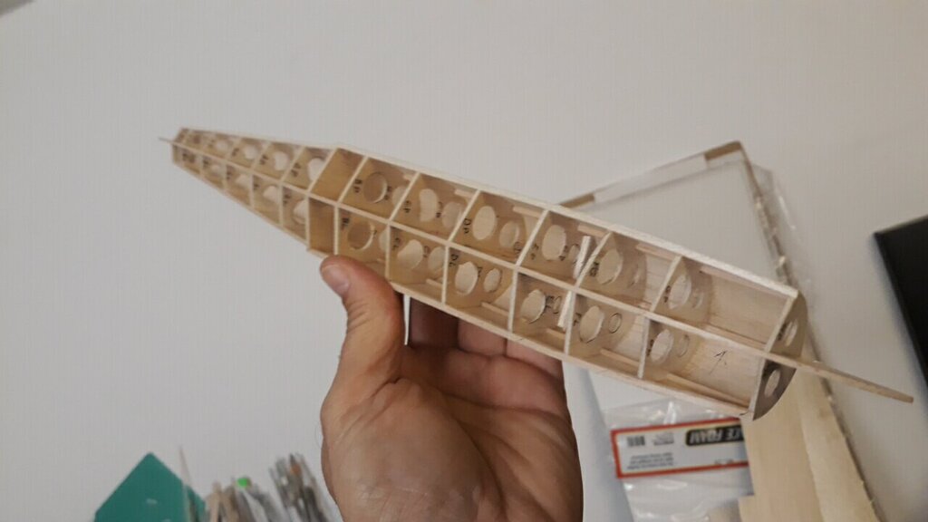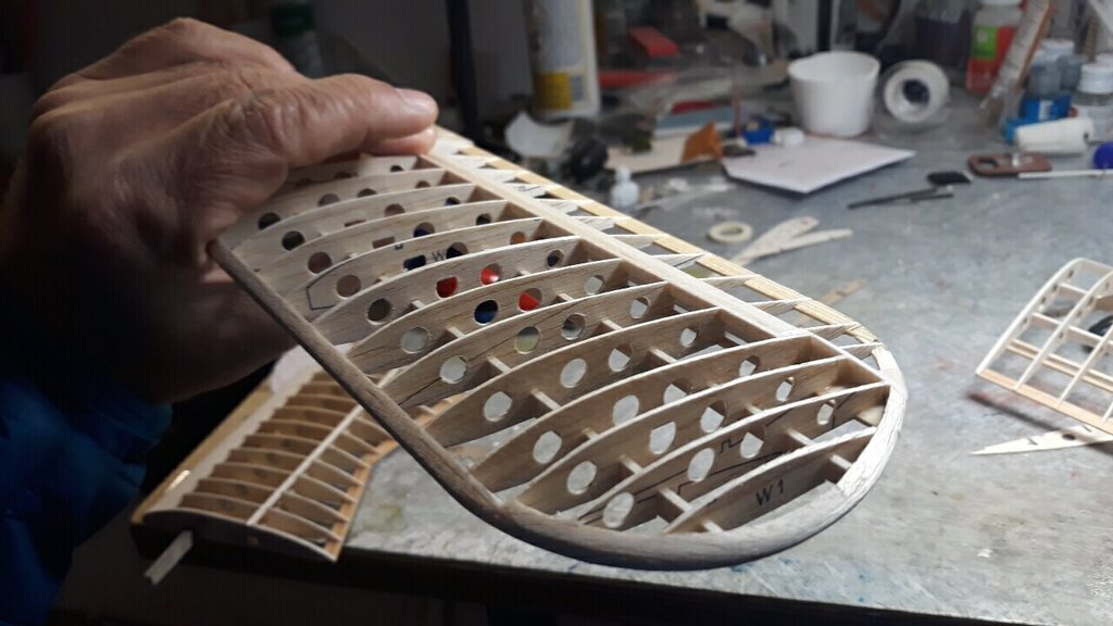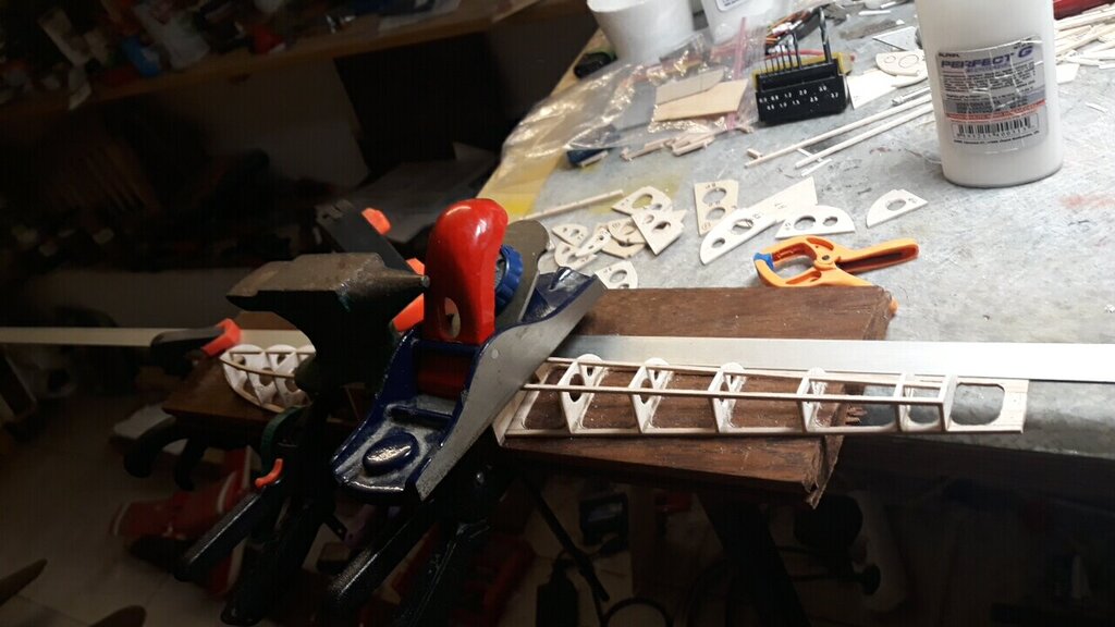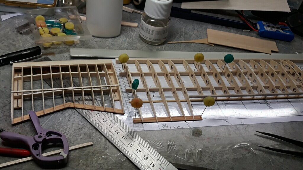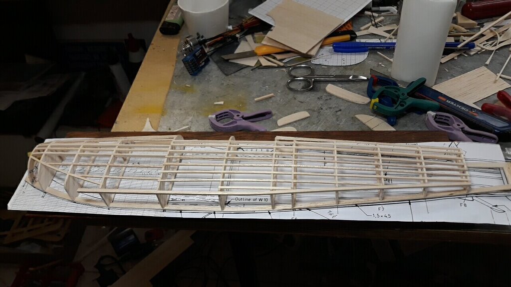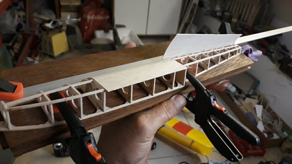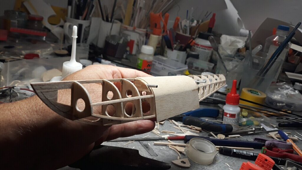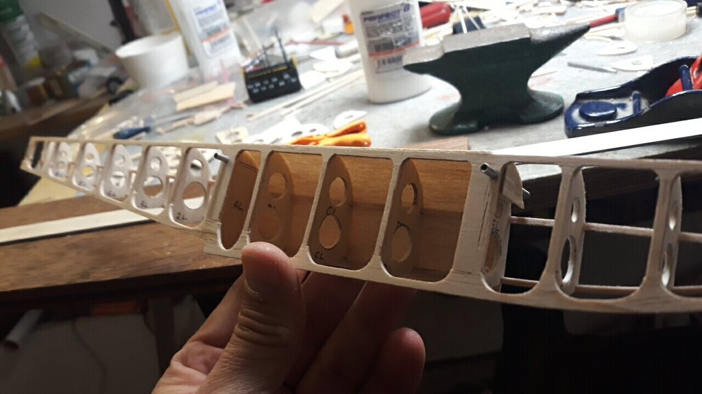 Dobry wieczór, Coś ostatnio miałem mało czasu na czynności naprawdę istotne i tylko udało mi się powyginać zastrzały płata, no i złożyłem to na sucho żeby zobaczyć ... sporo zmian i pracy jeszcze będzie, ale już raczej z górki, mam nadzieję; cdn. Pzdr, m