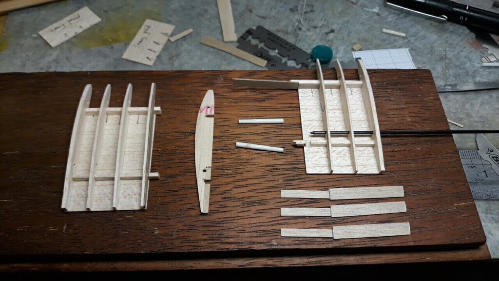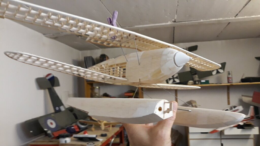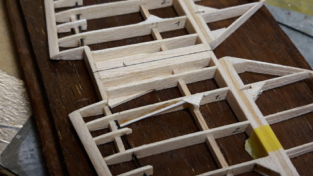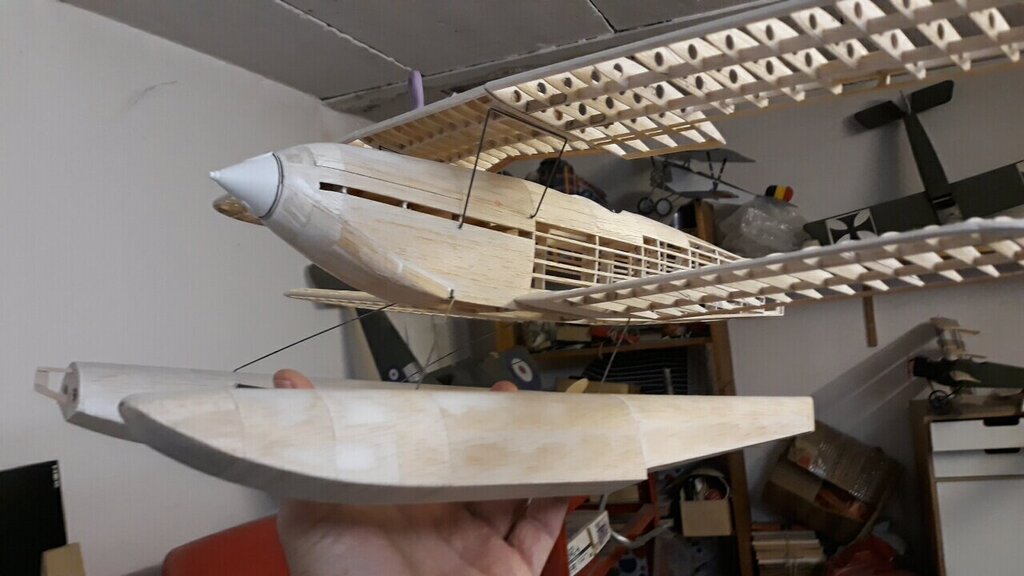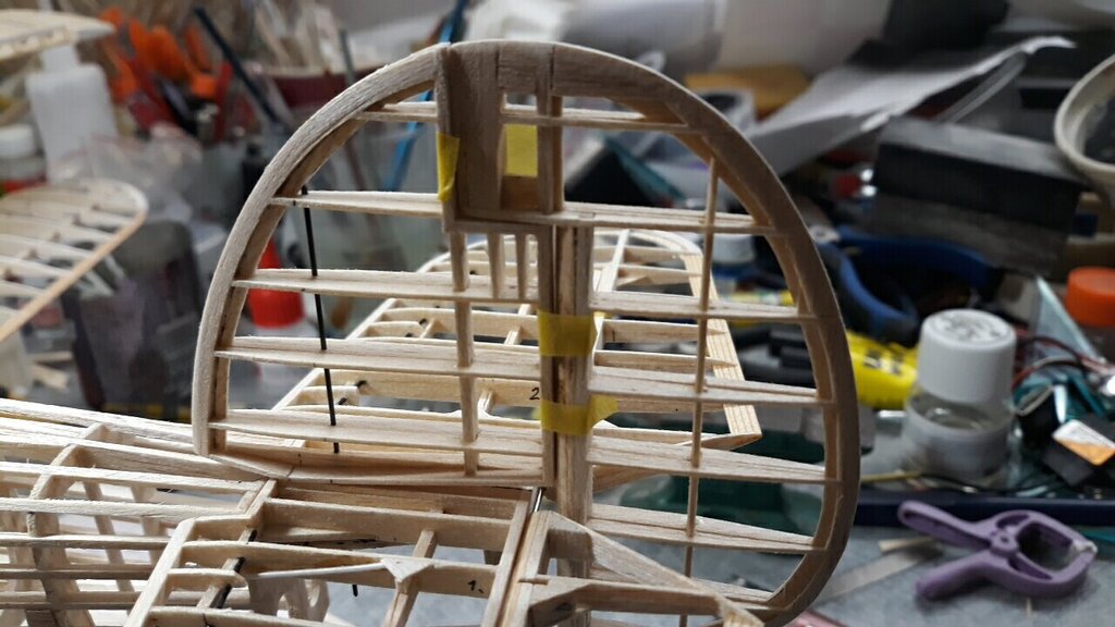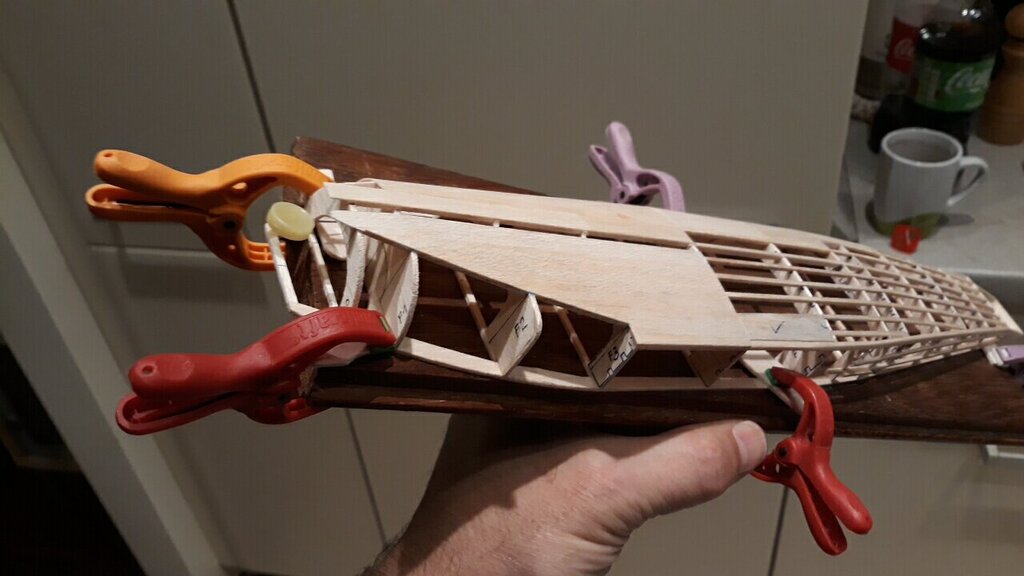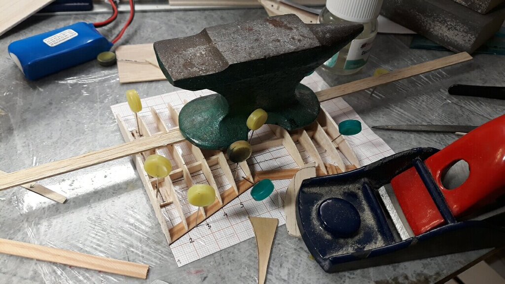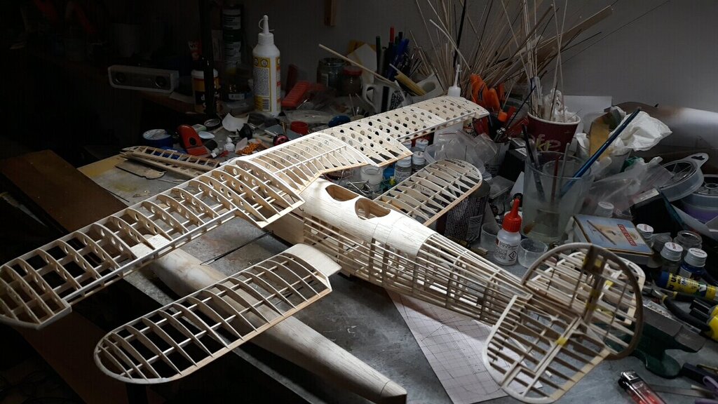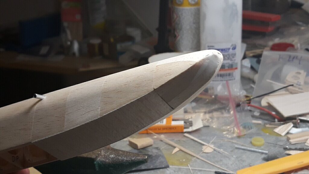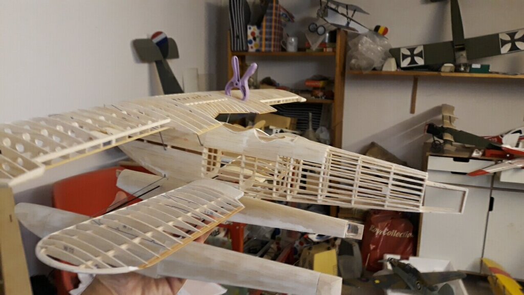 Dobry wieczór, Coś ostatnio miałem mało czasu na czynności naprawdę istotne i tylko udało mi się powyginać zastrzały płata, no i złożyłem to na sucho żeby zobaczyć ... sporo zmian i pracy jeszcze będzie, ale już raczej z górki, mam nadzieję; cdn. Pzdr, m