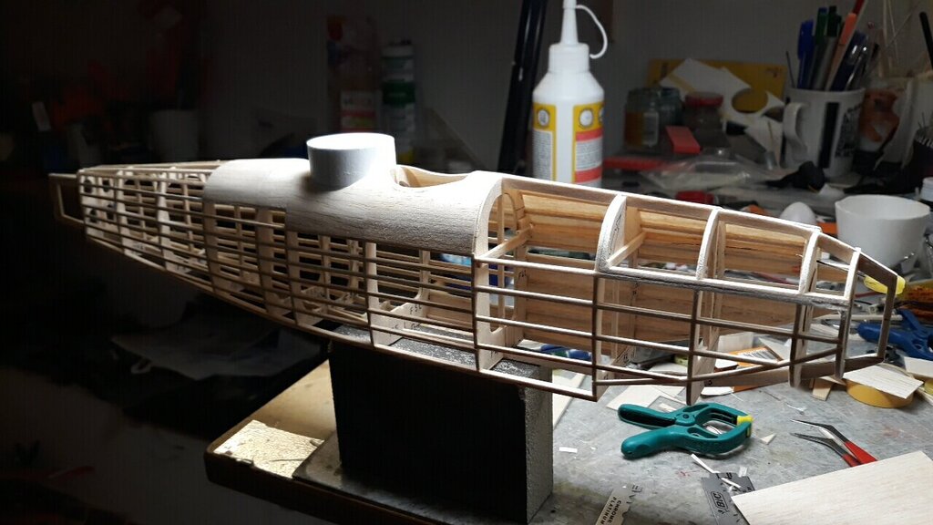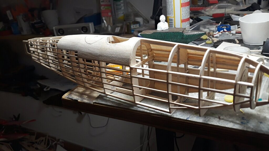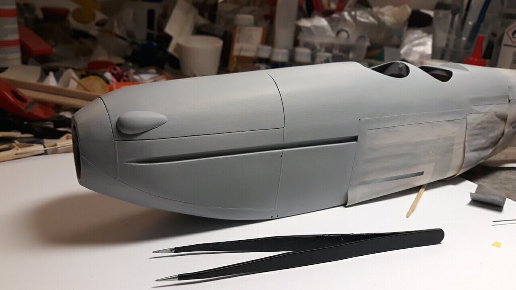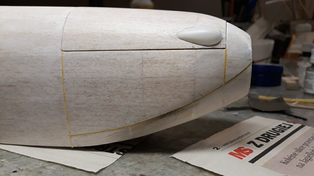 Dobry wieczór, Prawie cały tydzień spędziłem nad wykańczaniem kadłuba i przygotowaniem do oklejania; najgorsze było pasowanie "dzrzwiczek" dostępowych do serw i maski silnika; miałem też znowu problemy z termoformowaniem bo trafił mi się b słaby materiał i dopiero kiedy użyłem plastiku (odpadu z wypraski) z modelu Alfy udało się zrobić "łezki" na maskę silnika. Forma na kołpak też prawie gotowa. Od jutra zaczynam oklejanie, mam nadzieję;). Cdn.pzdr. M