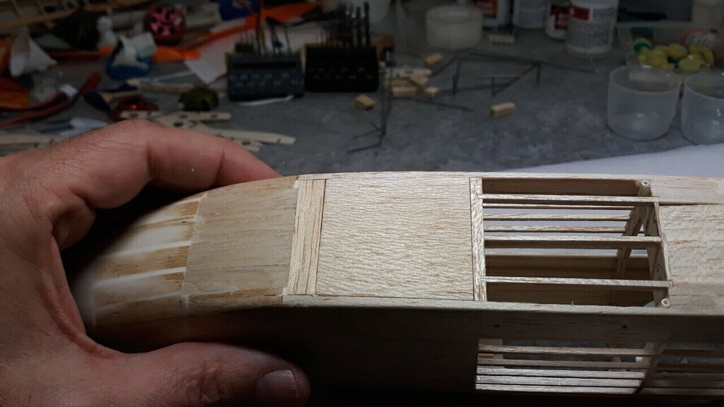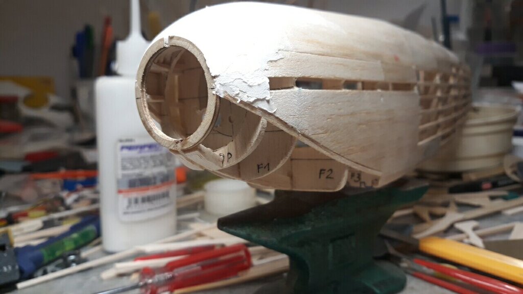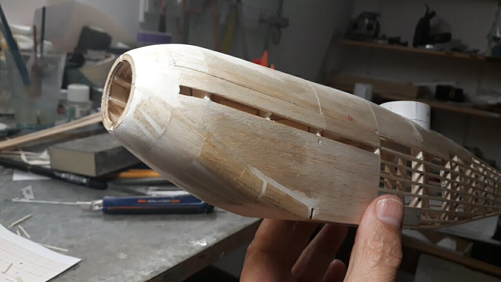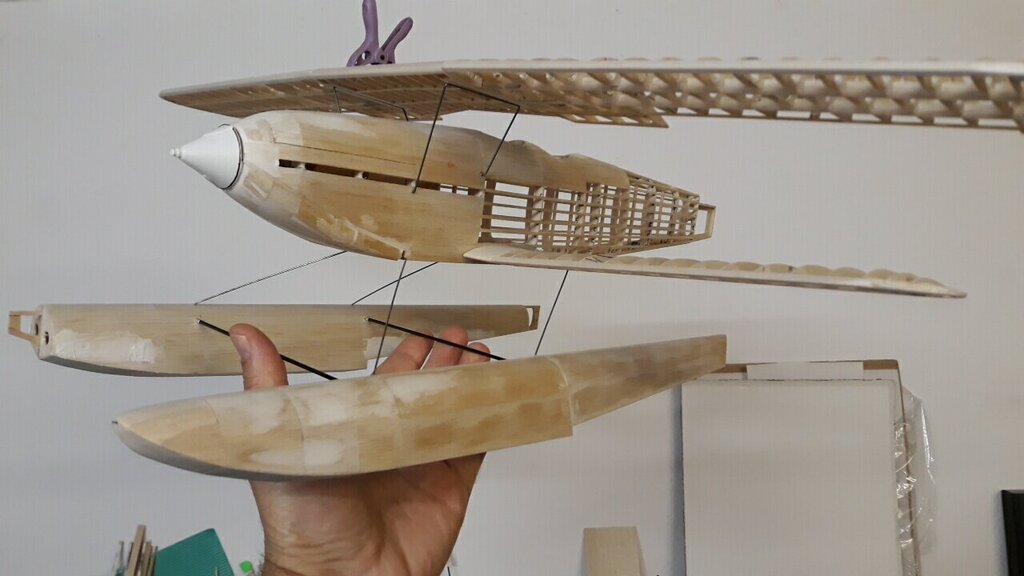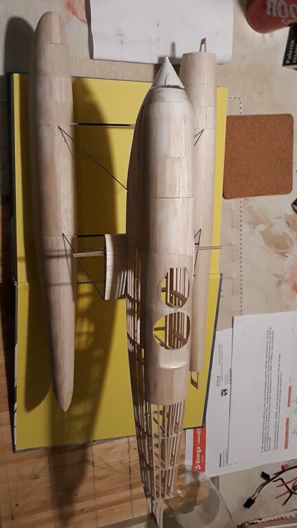 Dobry wieczór, Rzutem na taśmę wykończyłem dziób balsą jednak... No, a teraz teraz zabrałem się za płaty. Osprey miał składane skrzydła i centropłat na poziomie dolnego skrzydła; ponieważ do niego, a nie do kadłuba wchodzą zastrzały pływaków, musiałem wszystko wzmocnić odpowiednio i znowu sporo czasu zeszło; ale od jutra mam nadzieję prace nad skrzydłami "właściwymi" się zaczną. Cdn. Pzdr, M