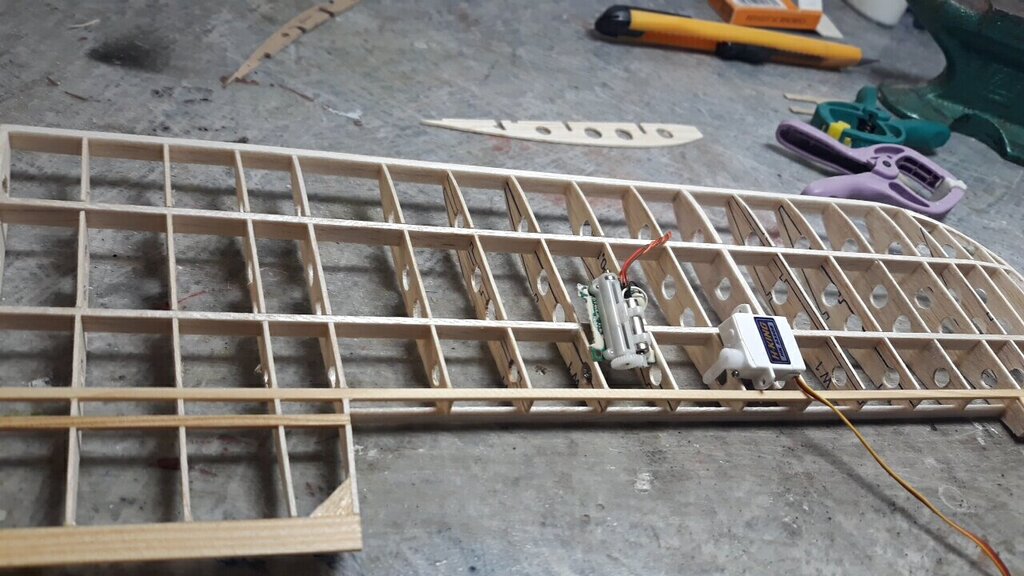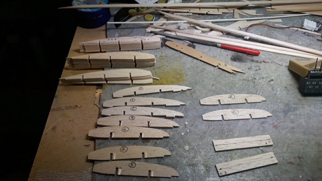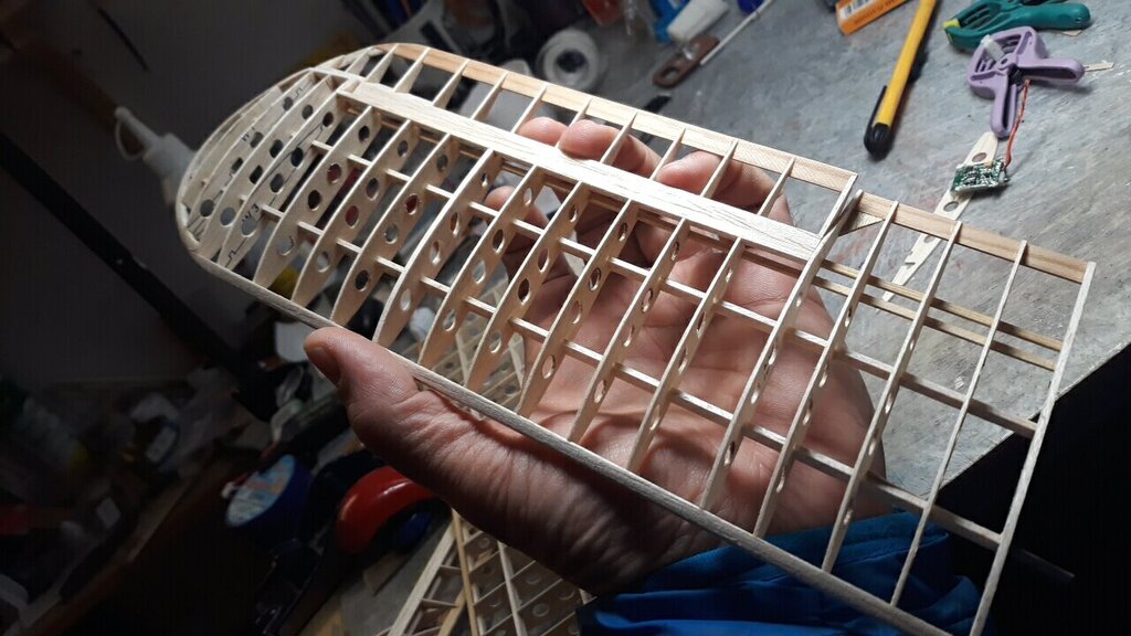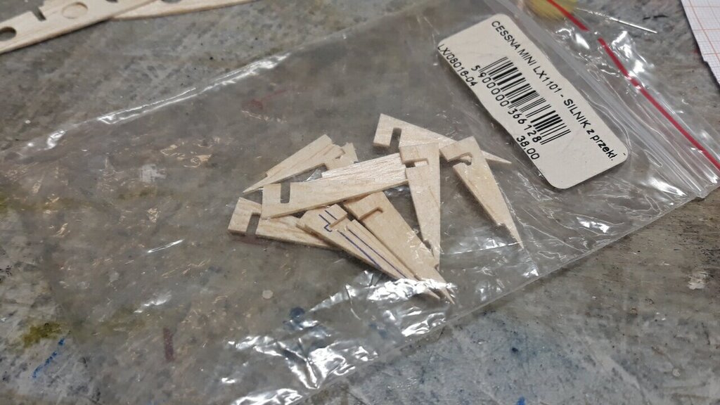 Dobry wieczór, Wyciąłem wszystkie żeberka płata i skleiłem baldachim. Niestety żeberka lotek są, w przeciwieństwie do żeber płata, prostopadłe do listwy spływu i trzeba będzie je osobno montowac:( ale trudno, teraz sklejanie płata idzie dość szybko; do momentu wykończenia i dopasowywania lotek bo te mają jakieś uskoki i duże zawiasy:( Nie mam ciągle pomysłu gdzie kupić cienkie (0.5 mm ID) rurki do bowdenów i postanowiłem że tym razem będą 2 serwa lotek. Mam serwa malutkie bardzo to powinno mi jakoś ujść na sucho;) Cdn Pzdr, m