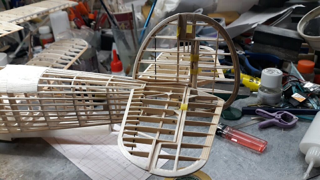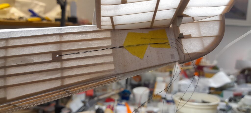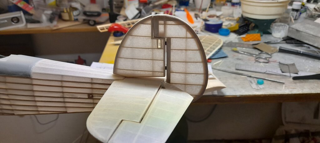 Dobry wieczór, Usterzenie oklejone i pocellonowane. Wyloty rurek dla cięgien SW nawet się nie zalały lakierem i wygląda że są ok. Teraz muszę powklejać orczyki i zawiasy z dyskietek.cdn. Pzdr, M