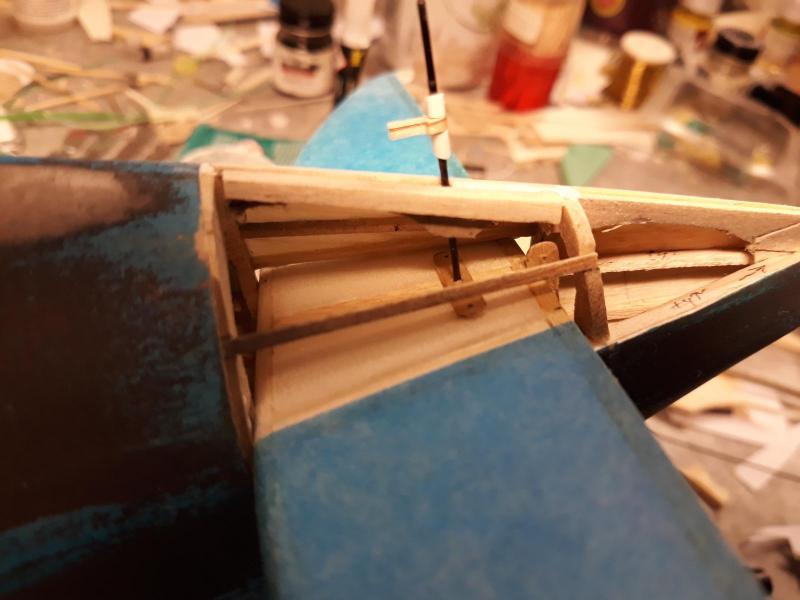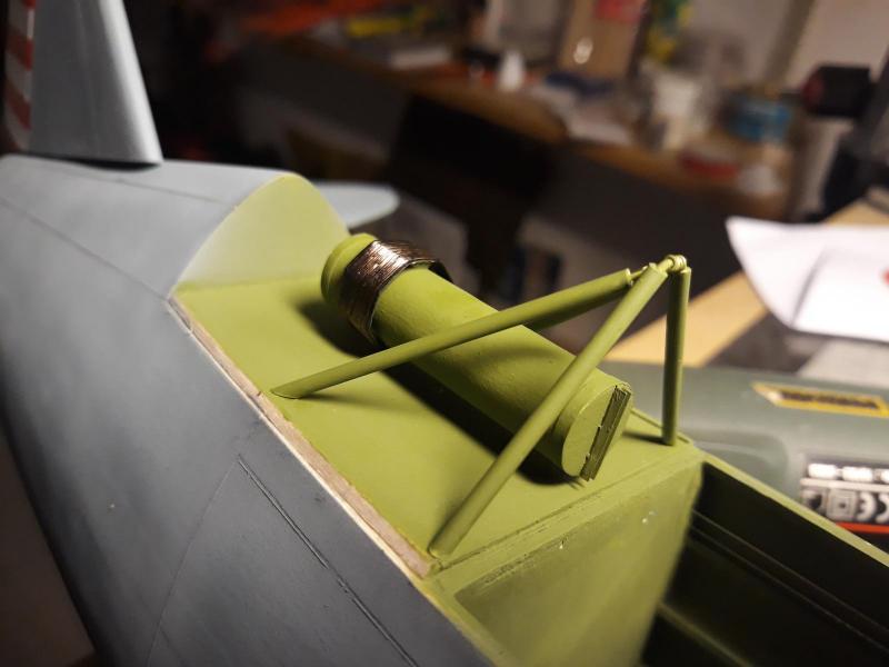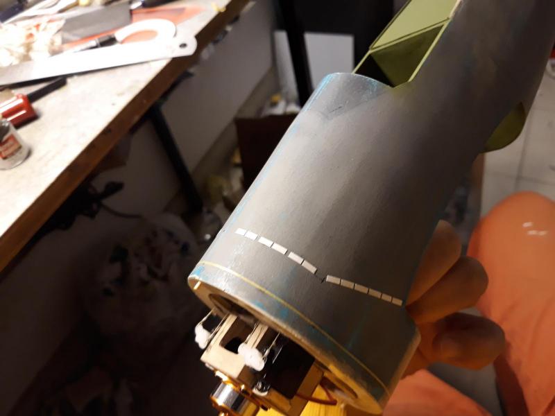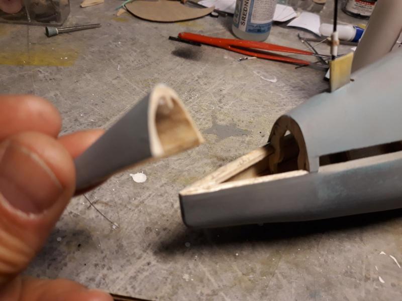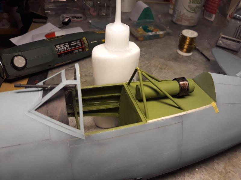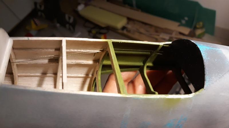 23. Dobry wieczór, Jakoś pewnie dobrnę do końca ale upierdliwe te kabelki strasznie. Zamontowałem na jednym cylindrze żeby zobaczyć jak to może wyglądać i zrobiłem przerwę - teraz dla odmiany zabrałem się za kabinę, krawędzie w miarę opanowane, resztki niepotrzebnego kawałka wręgi usunięte. Wycìąłem też z grilowego patyczka bambusowego listewkę z której spróbuję wygiąć ramkę wiatrochronu. Zobaczymy jak to wyjdzie. Pzdr. M