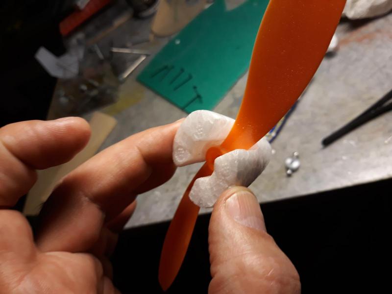 18. Przykleiłbym sam kołpaczek do łopat na 2 malutkie kropelki uhu por. Mozna tez dodać kołnierz za prop saverem (tj od strony silnika ) i ten kolnierz przykleić do kołpaka tak aby dociskał lopatki (tylko wtedy jak prop saver "zadziala" to kołnierz się zerwie, ale moze być wyciety nawet z bristolu wiec problemu nie bedzie. Kluczem absolutnym jest aby kołpaczek nic nie ważył wtedy problemów z wyważeniem etc nie będzie. Pzdr. M