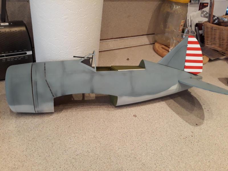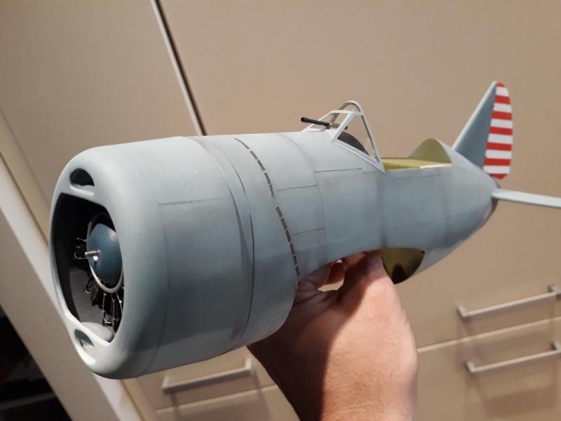 11. Dobry wieczor, Pomalowałem osłonę silnika i nakleilem maski na kadłub. Opornie to idzie ale może jutro już malowanie kadluba sie skonczy. Chcialbym zrobić malowanie z bazy Ewa chyba wczesny 1942 rok z pięknymi jeszcze dużymi gwiazdami na skrzydłach i biało czerwonym sk. Tak będę knuł. Cdn.pzdr. M