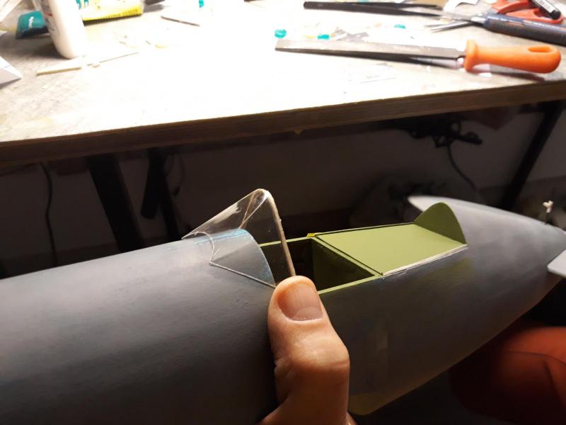 4. Dobry wieczór, Byly niestety inne 'działania na polu' i postępy w modelarni małe. Ale mam nadzieję że już niedlugo wezmę się za skrzydła i będxie trochę z gorki:) Osłona kabiny wykonana z dość grubego i sztywnego tworzywa sprawiła mi duże trudności w dopasowywaniu i formowaniu ale jako tako już pasuje; mam nadzieję że ją się tasiemkami doklei; tu najgorsze jest to że jeden błąd tj upaćkanie klejem i kicha, no zobaczymy za którym razem się uda. Cdn. Pzdr. M