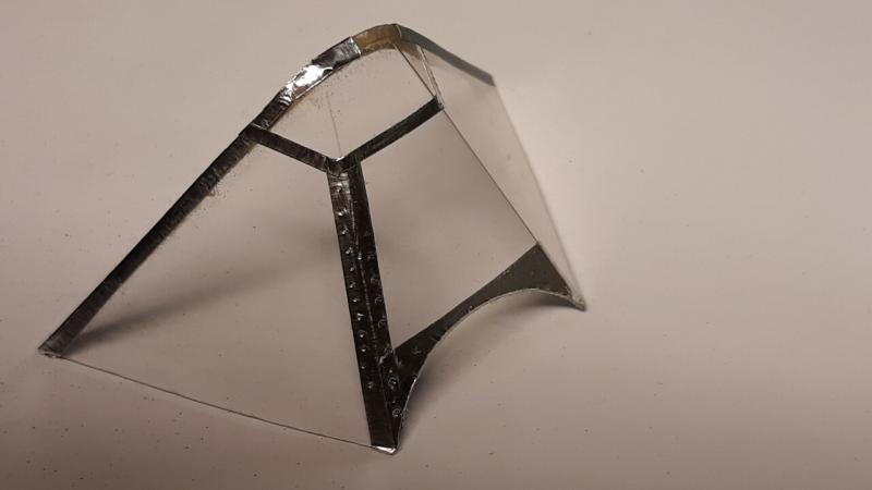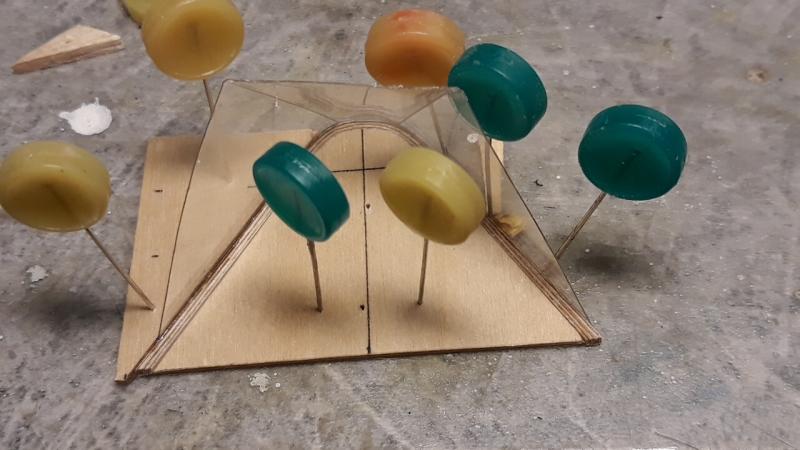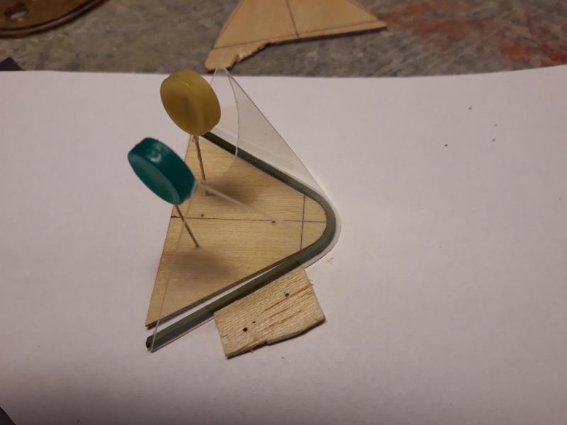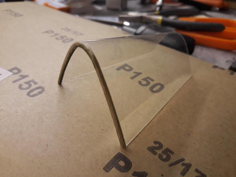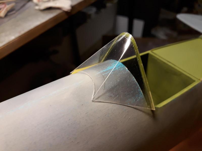 13. Dobry wieczór, Postępy małe. Zawiesiłem się jakoś nad wykonaniem wiatrochronu; po pierwsze byly problemy z samym wycięciem wlaściwego kształtu (niby sprawa banalna ale tutaj bedzie kabina zamknìeta i kazdy milimetr różnicy np wysokości wiatrochronu zaburzy kształt calej kabiny) a poźniej z wkonaniem ramki. Nie mogłem znaleźć jakiegoś rozwiązania które dawałoby odp elastyczność (lekką) ramki i dobre połączenie z plastikiem owiewki. Eksperymenty były różne: druciki i bambusowa listewka i wsxystko kicha. W końcu zrobiłem ramkę z laminatu trzech 1mm pasków sklejki 0.4 mm. I taką ramkę przykleiłem do testowego wiatrochronu. Wynik mzd ok. Da się taką ramkę jeszcze pocienić i z malowaniem nie powinno być kłopotu. Wersja docelowa mam nadzieję gora za 2 dni. Cdn. Pzdr, M