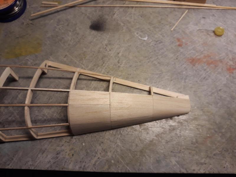 Dobry wieczor, Znalazłem zdjęcie pokazujące wyraźnie jak bardzo obły był kadłub bizona i teraz napadly mnie wątpliwości co do metody pokrycia tyłu kadłuba, może by tak malymi klepkami go? żeby dać sobie więcej czasu na myślenie zabrałem się za usterzenie, tu jeszcze chwila zejdzie... Cdn. Pzdr. M