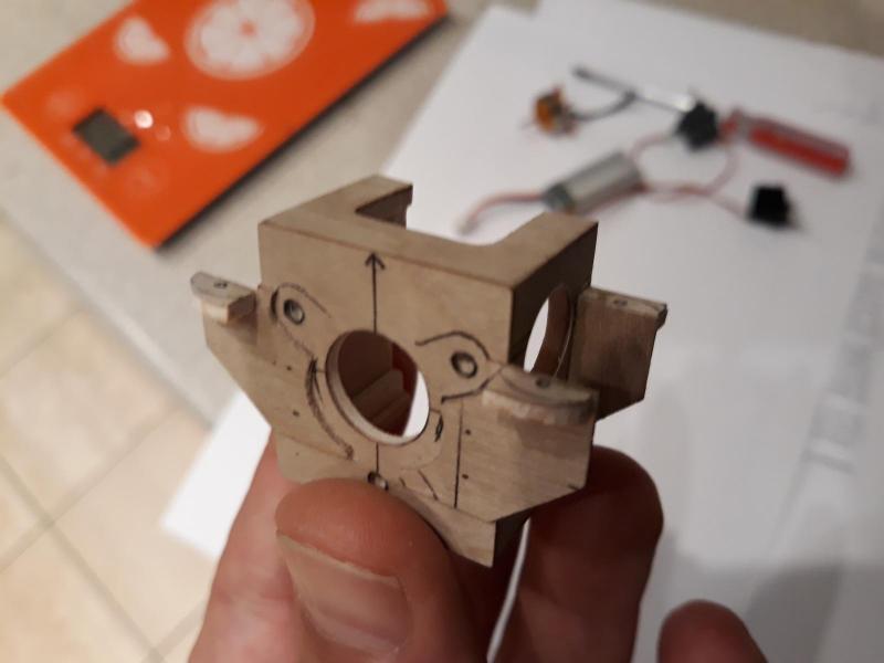 Dobry wieczór, Trochę to trwało i mnóstwo jest jeszcze do zrobienia ( jak u Mleczki! ) ale prototyp podwozia wreszcie dziala! Trzeba będxie popracować zwlaszcza nad prowadnicami linek, bo te na razie latają swobodnie i czasem sie haczą, ale najważniejsze że metoda blokowania się sprawdziła. Nowe serwo ma chyba 1,8 kg na cm a wazy 5 gramów. Niestety całosc skrzydla z serwem wazy juz ok 33 g, więc będę musiał włączyc program oszczędnościowy. Będzie cd. Pozdr. M Ps. Nie wiem czy o tym pisałem ale chyba też pomogło wykonanie powiększonych otworków w ramieniu serwa, tak aby dzialanie popychacza zostało odrobinę opóźnione wobec ruchu końcówki ramienia które ciagnie linkę. (Ta koordynacja jest warunkiem koniecznym złożenia otwartego /i zablokowanego/ podwozia i dlatego nie moglem zastosowac drugiego serwa do obslugi linek).