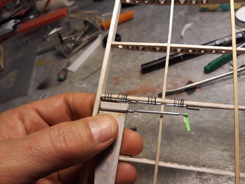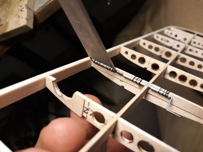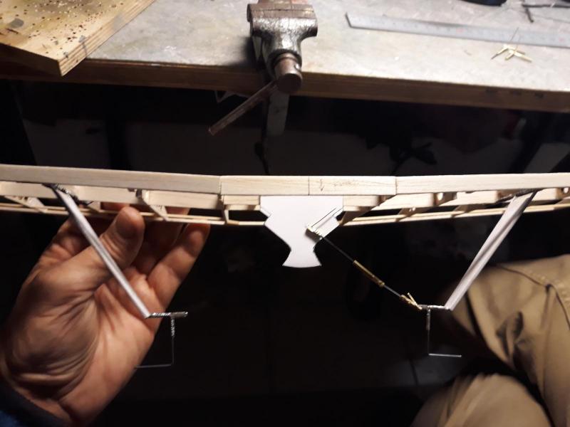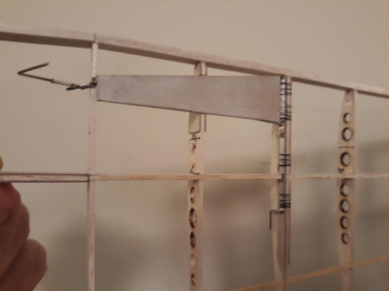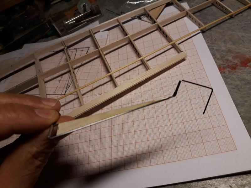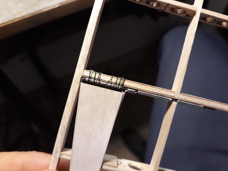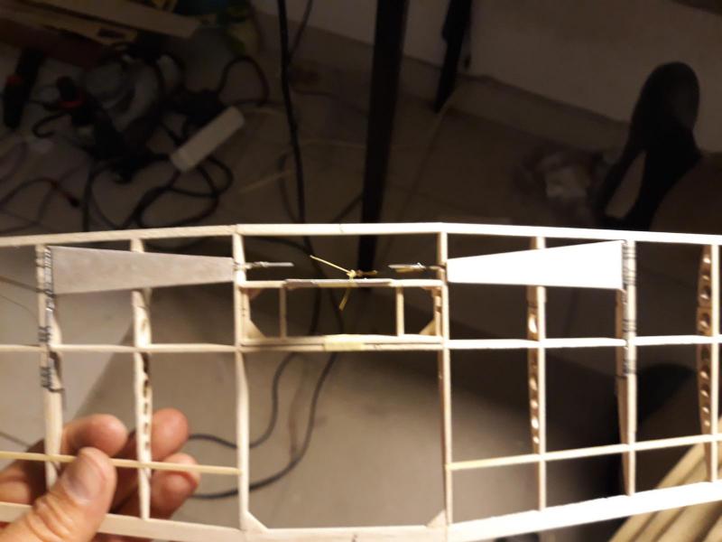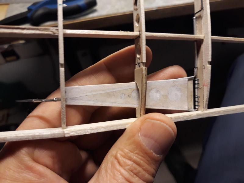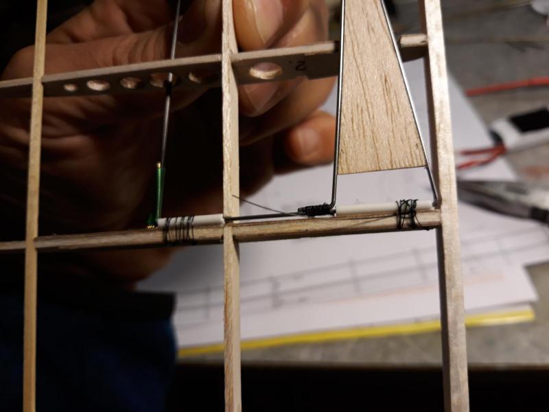 Dobry wieczor, Postęp dziś mały, ale szcześliwy bo w czas sobie przypomnialem ze trzeba "oczka" do polączenia goleni z rozpórkami zrobić, a po montażu goleni to kaplica. Myślę też jak te rurki w których obracają sie osie goleni przymocować do żebra. Chcialem je po prostu przykleić żywicą, ale teraz myślę żeby je jednak najpierw do żeber przyszyć. Teraz otworki w żebrach na nici łatwo sie nie dadzą zrobić (trzeba bylo myśleć wcześniej!) ale może spróbuję je wypalić drucikiem przymocowanym do lutownicy. To tyle na razie.Cdn Pozdr. M