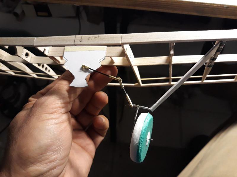 Dzien dobry, Czasu malo ale zawsze cos. Odbudowałem zespsuta golen, a w miedzyczasie zacząłem przymiarki do rozpórek. Tak naprawdę to one będą tu kluczowym elementem bo tylko jeśli będą odpowiednio pracowac to podwozie osiągnie odp sztywność i będzie pracowac prawidlowo. Zeby zamontować os głowną rozporek bede musial zrobić coś w rodzaju polwręgi (ale przymocowanej do dolù skrzydla (na zdjeciu model wycięty z kartonu, w ksztalcie podobnym do choinki). Chcialbym ją tak zrobić zeby rozpórka nie mogla "machać" sie na boki i zeby poruszała sie tylko wokól osi równoległej do samolotu. Pewna koncepcje juz mam ale do tego daleka droga. Najpierw zrobiłem prototypy zawiasów rozpórki z rurki mosiężnej. Pierwszy raz robię takie rzeczy, ale jakoś mnie to wciąga bo wymaga duzej (jak na mnie) precyzji i kombinowania bo miejsc łączenia rozporek jest kilka a kazde musi być ruchome mozliwie tylko w jednej osi. Teraz dopiero widzę, dlaczego jak taki maly w sumie przyrządzik jak podwozie wymaga tylu kombinacji;) Ale będę jechał dalej. Cdn. Pozdr. M
