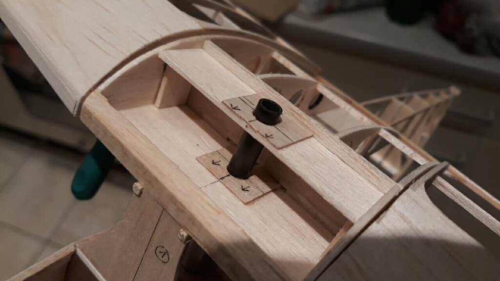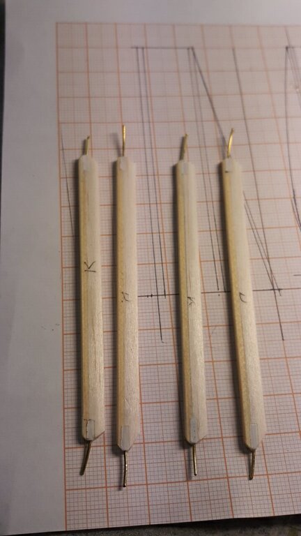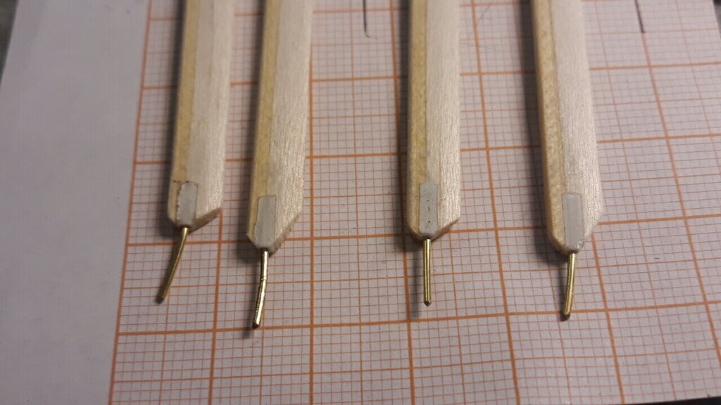 Dobry wieczór, Znaki rej wyszły jako tako ale już nie będę ich zrywał; mam nadzieję, że po zmyciu płynu i lekkiej warstwie lak będzie w miarę ok. Dziś zrobiłem zastrzały i od jutra już finalny montaż. Cdn. Pzdr, M