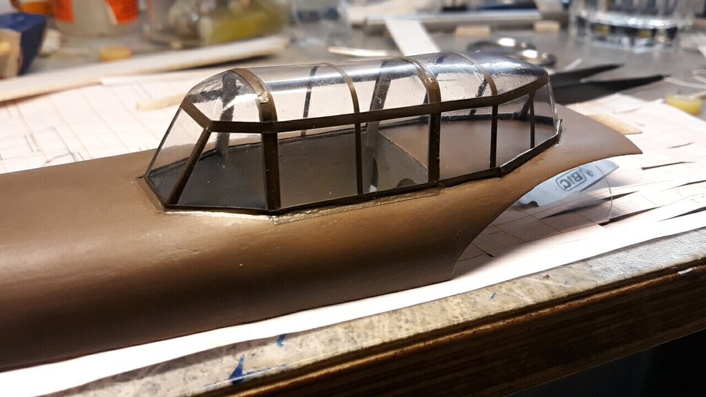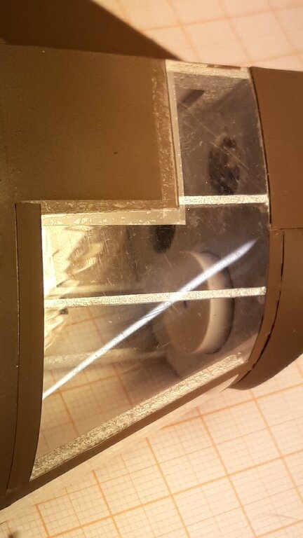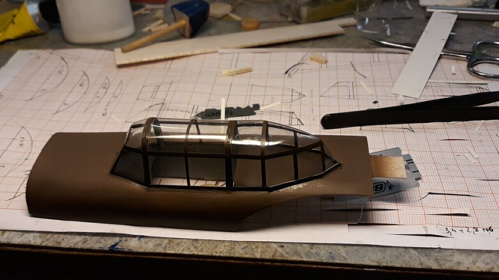 Dobry wieczór, Uff, no to kabina zrobiona... Nakomplikowałem bez sensu i sklejałem ją z 3 kawałków plastiku i 2 półwręg, ale nie umiałem tak dużej kabiny w 1nym kawałku uformować. Ramki kabiny zrobione z kalki przezroczystej malowanej najpierw na czarno potem khaki. Cdn. Pzdr. M Ps. Kilka słów o okienkach i kabinie: Wszystkim okienkom w kadłubie dodałem ramki wykonane z pasków kalkomanii. Kalka jakiej użyłem pochodzi z odpadów po albatrosie alfa models i jest b cienka i doskonale się klei. W ten sposób udało się dokleić brzegi farby której gruba warstwa momentami odchodziła od folli pokrywającej kadłub. Udało się mzd super - brzegi zabezpieczone, farba nie ma jak "uciec". Na dziobie, jak pisałem część boków jest pokryta pap jap którego brzegi też niestety miejscami odchodziły. Przykleiłem je cienkimi paskami folii (brzegi papieru przylegają teraz idealnie) na gorąco a pitem nakleiłem znowu ramki z kalkomanii jw. Kabinę formowałem ożywając różnego rodzaju pokrywek do sushi. Okazuje się że opakowania mimo iż wszystkie wyglądają identycznie są wykonane z różnych rodz plastiku i niektóre z nich formują się b opornie - nauczka - trzeba gromadzić różnego rodzaju opakowania i próbować aż któreś się "podda". Tył kabiny wyszedł mi chyba za 8mym razem m