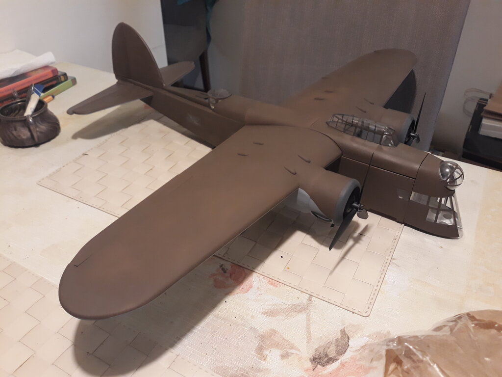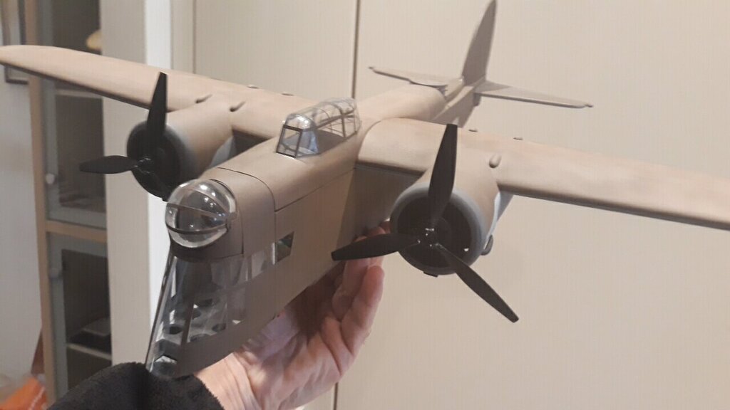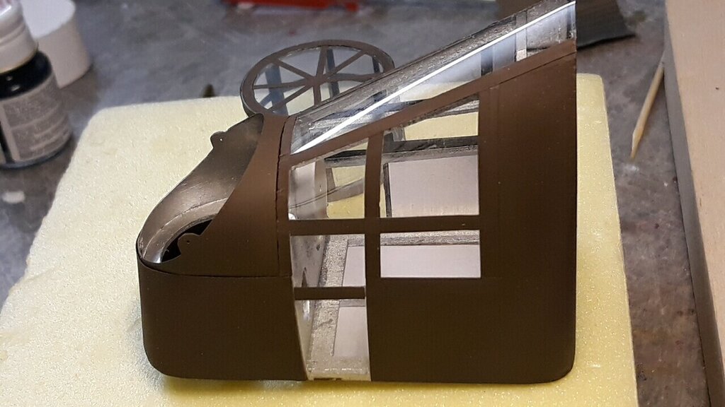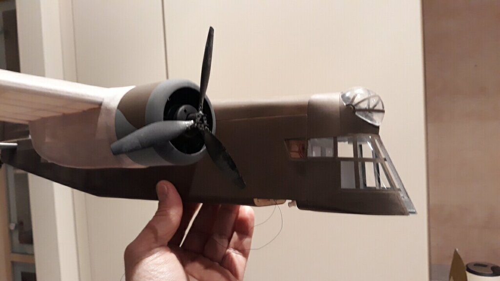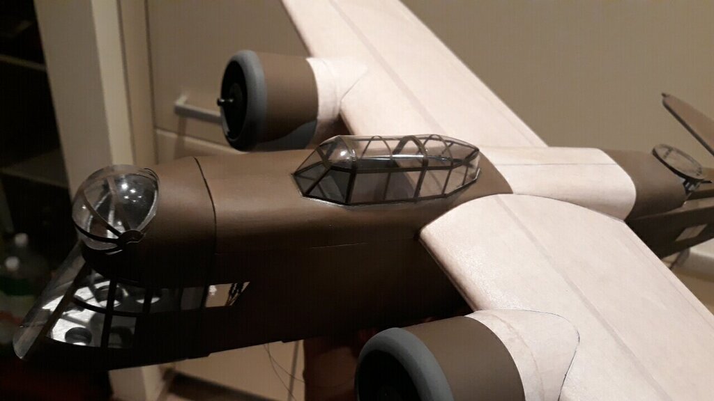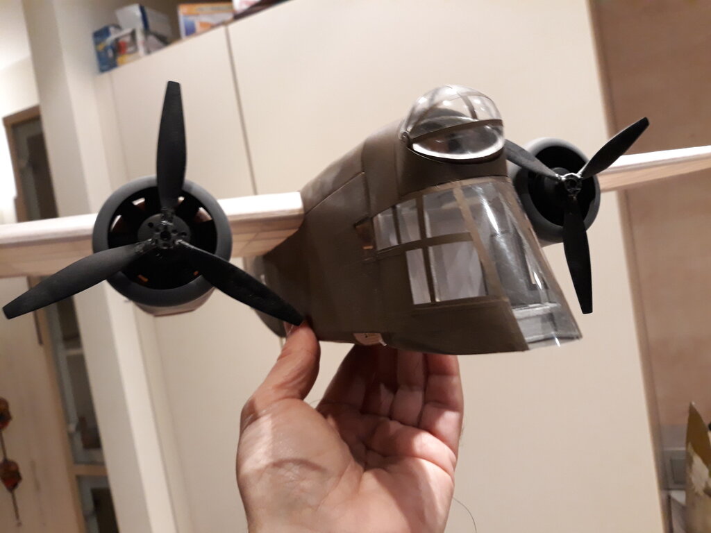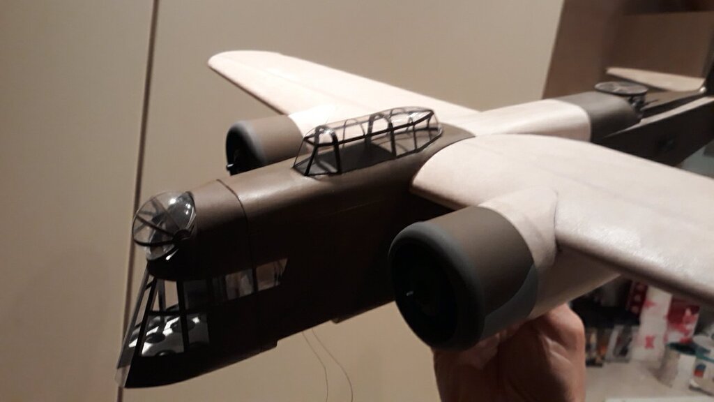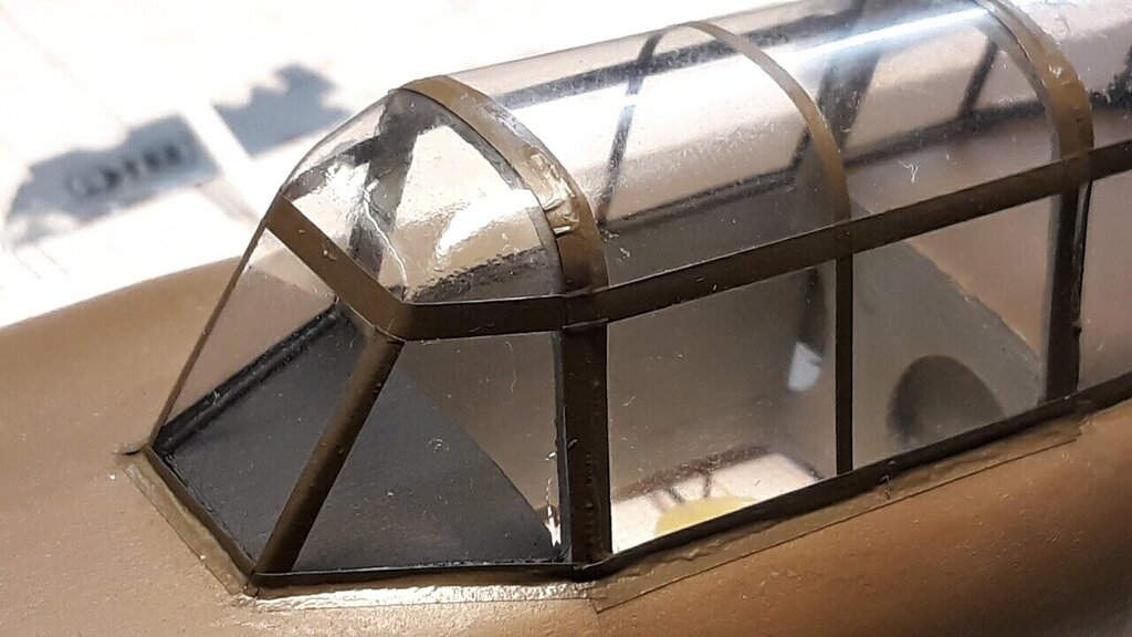 Dobry wieczór, Po przerwie konkursowej wrócilem do Żubra. Udało się w końcu przykleić większość ramek oszklenia dziobu, zrobiłem wieżę tylną i dokończyłem osłony silników. Kilka słów o montażu ramek dodam za chwilę jak trochę odsapnę cdn. pzdr, m