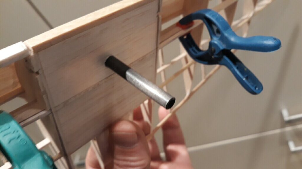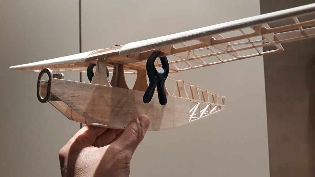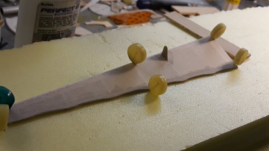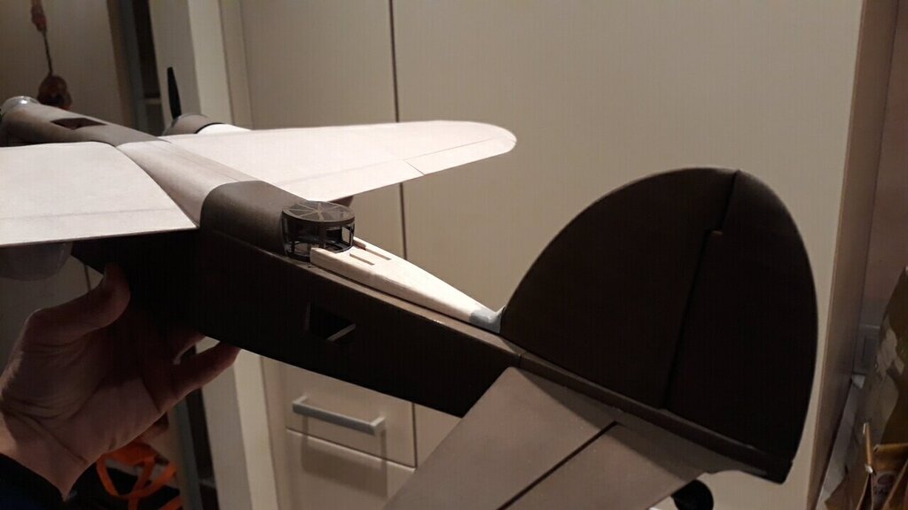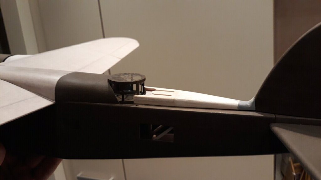 Dobry wieczór, Dzięki! Jak na mnie to gigant, ale na świecie to muszka ...:) Dwa dni były przymierzania, doklejania, wiercenia etc zanim płat udało się w końcu dopasować; ostatecznie płat "siedzi" na bagnecie z rurki, śrubce plast w środku przekoju plata i malutkim kołeczku z tyłu. Ale jak się przykręci to siedzi dość solidnie i równo; ciekawe ile wytrzyma...:) Trochę zacząłem prace nad usterzeniem pion żeby kupić trochę czasu na budowanie maski silnika - to będzie rzeźnia, będę chyba znowu prototyp budował zanim się połapię jak ją w końcu wykonać. Cdn. Pzdr, M