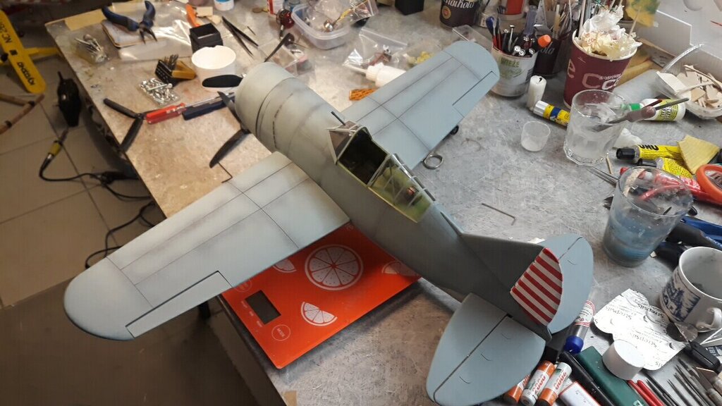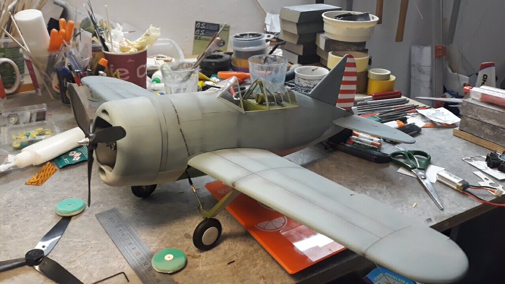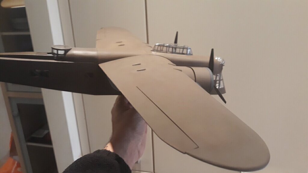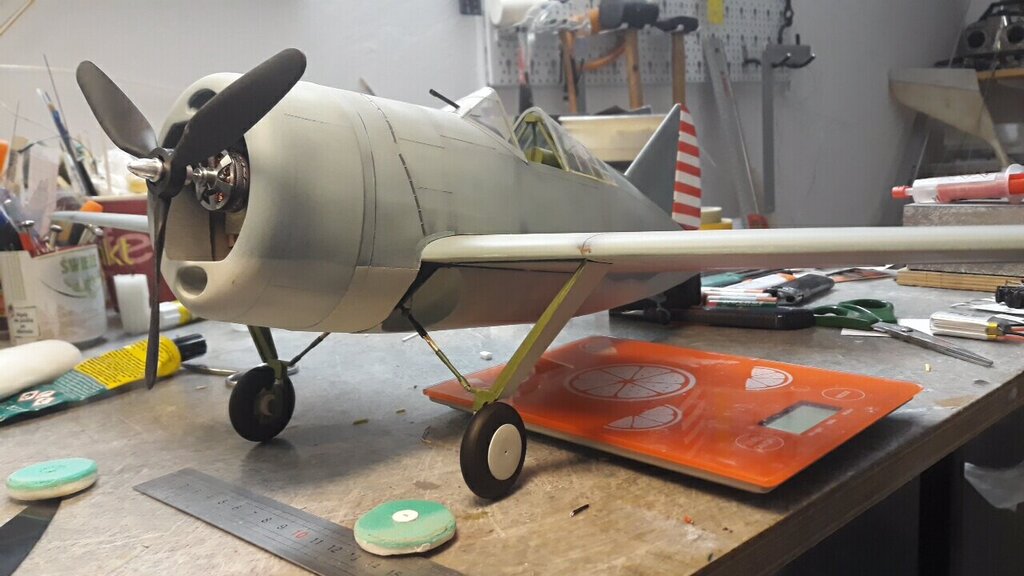 Dobry wieczór, Model piękny! Ten mój to przy nim mucha. Korzystając z chwili wolnej w święta zrobiłem trochę centropłata i pogrzebałem przy mocowaniu płata, na razie sucha przymiarka i jeszcze bez kilku części ale "w ręcach" wygląda że trzyma:) Cdn. Pzdr, M