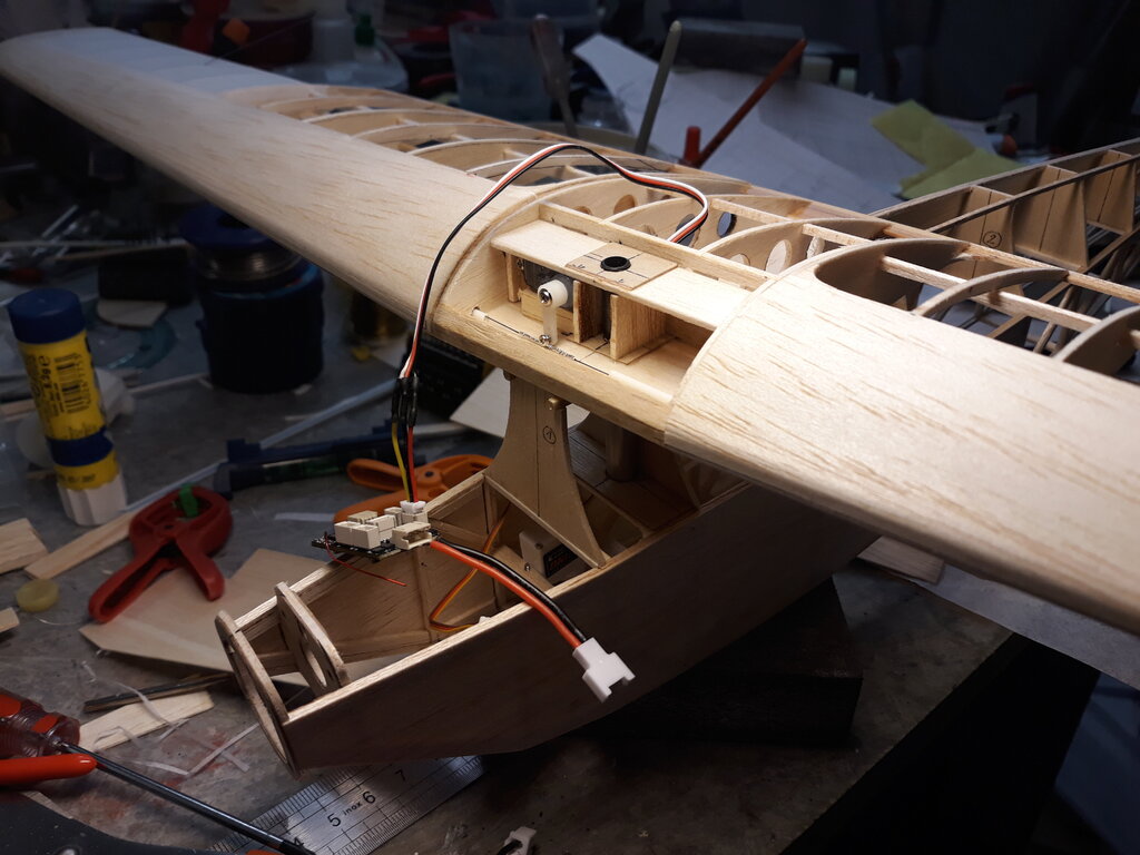 Dobry wieczór, Konstrukcja główna płatów prawie gotowa. Dodam jeszcze atrapy żeberek żeby wyglądało jak w oryginale. Kupiłem na B good taki mały odbiorniczek z zainstalowanym 7 A esc - wypróbowałem to z silniczkiem park 250 - i wygląda że działa. Będę to testowal na tym rwd - jeśli się sprawdzi to super sprawa - odchodzi cale mnóstwo kabli i sam regiel co go upchać zawsze trudno. Cdn. Pzdr, M