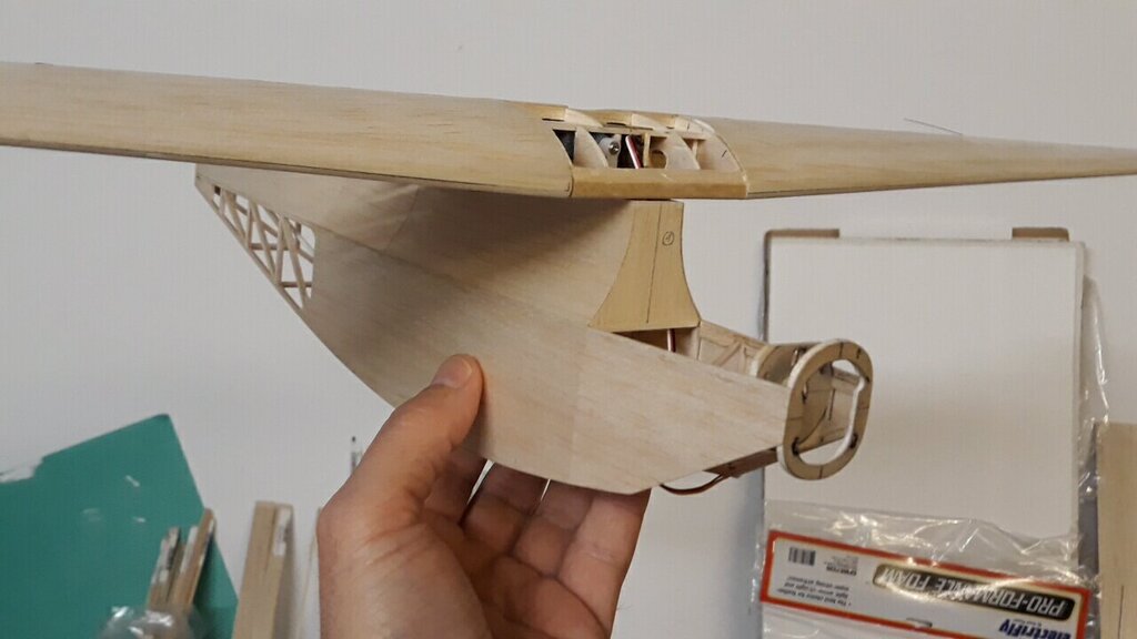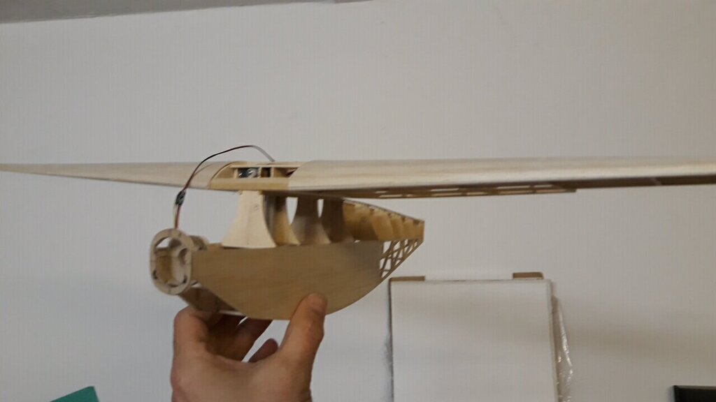Dobry wieczór, Poskładałem główne części razem (płat i "brzuch" są zdejmowane) i już niewiele do końca zostało. Słaba natomiast jest waga - z baterią będzie 160g a to dużo bo płaty są dość małe i profil dosyć cienki. Teraz, z perspektywy czasu widzę, że dużo warto by było zrobić inaczej - i lżej. Zamontowałem też inny niż kiedyś myślałem silnik - zamiast park 180 będzie 250 - bo ten mały to już wiem że takiej "beczki" nie pociągnie. Z lataniem będzie ciężko bo będzie musiał latać b szybko - no ale to się okaże. Zawsze będzie jakaś nauczka. Cdn. Pzdr, M