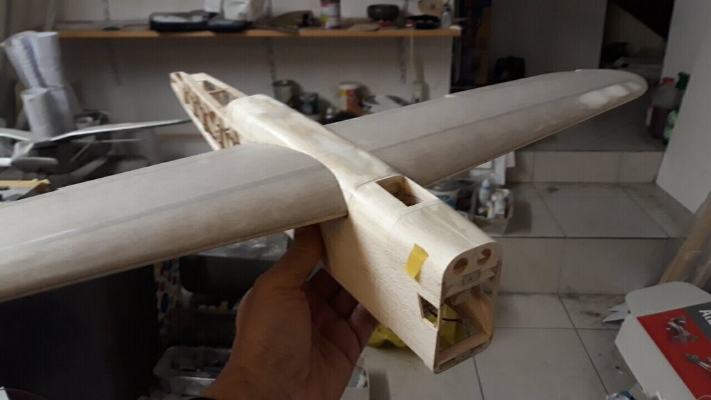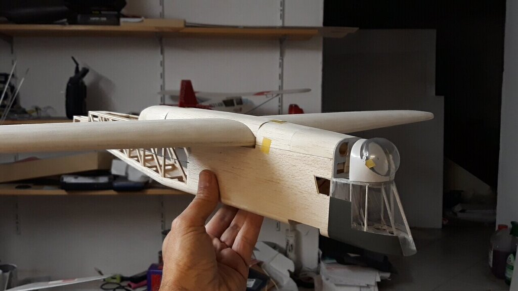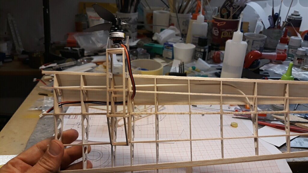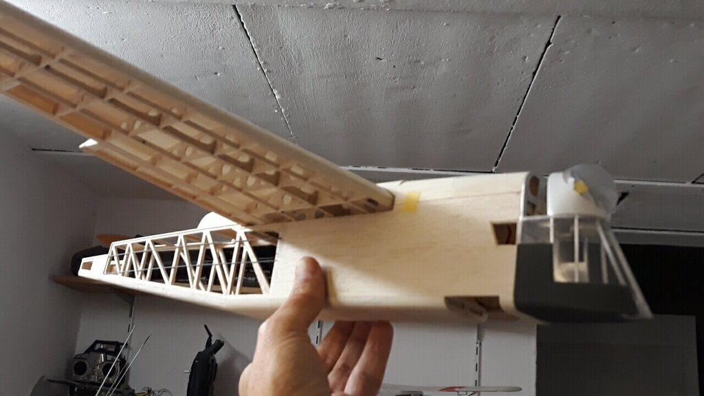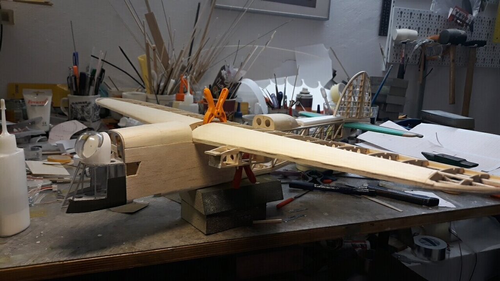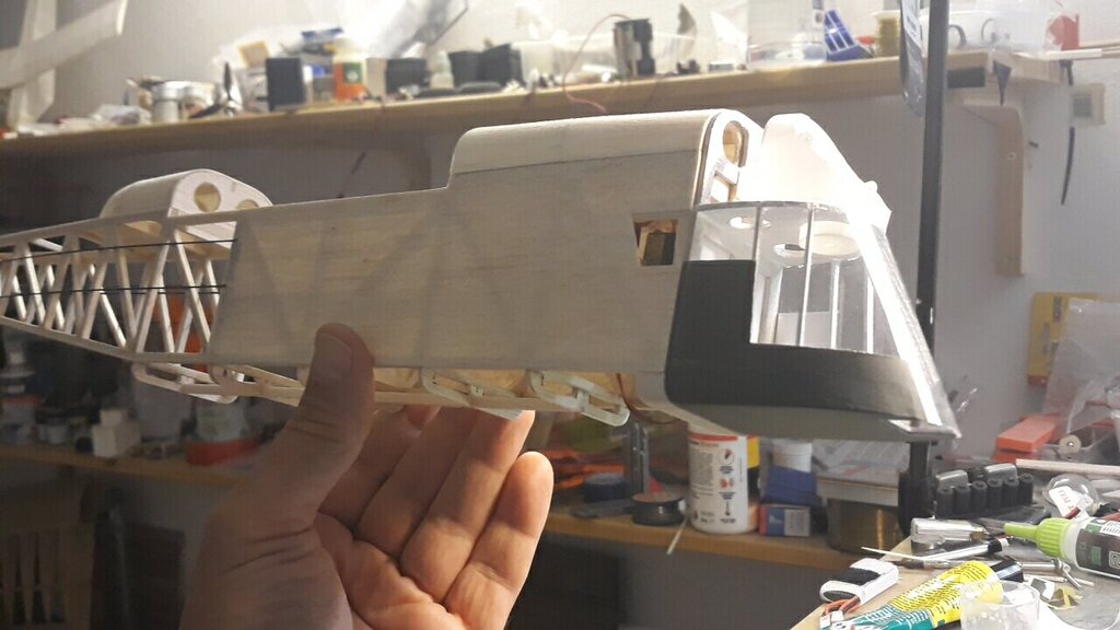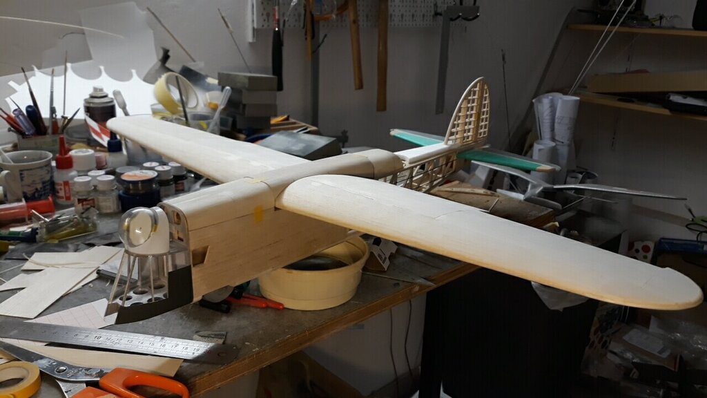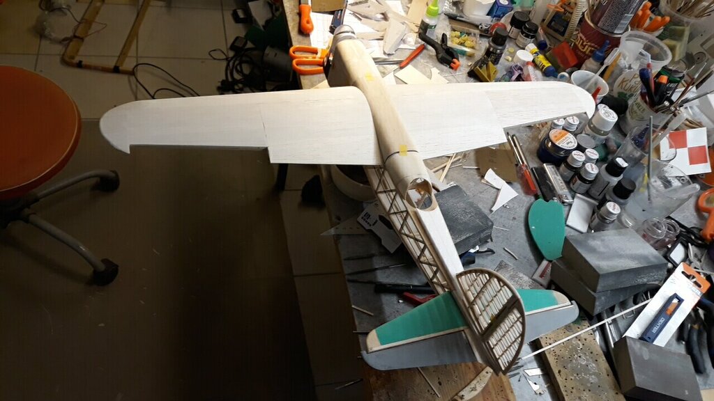 Dzięki!:) Miło mi! Ostatnio było dużo roboty a mało efektów niestety, ale cośtam do przodu. Pokrywałem pap jap skrzydła i gondole i parę drobiazgów, zrobiłem lotki, ale utknąłem na rozwiązaniu kwestii zapewnienia możliwości wymiany serwa w skrzydle a co za tym idzie, "rozłączności" płata od kadłuba - kurcze wszystko się zaczęło komplikować. No ale jakoś to wyjdzie mam nadxieję. Serwo testowo zamontowałem i wyszło, że ten "dynksik" łapiący drucik napędzający lotki nie działa - na filmie widać że śrubka dociskowa nie trzyma drucika i lotki nie wracają do neutrum trzeba będzie to inaczej rozwiązać - będą pętelki na drucikach z obu płatów i w tę pętelkę wkręcę śrubkę która z kolei wejdzie w ramię serwa; tak zrobiłem w Albatrosie i działa super i bezobsługowo bo śrubka nie musi dociskać drucików i jej poluzowanie nie wpłynie na ruch lotek. Czyli jeszcze sporo do zrobienia. Cdn. Pzdr, M