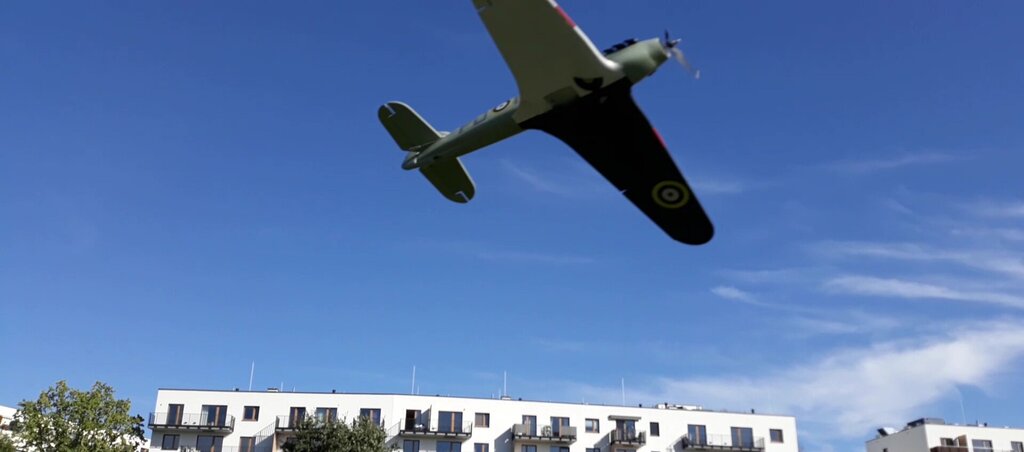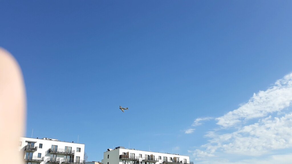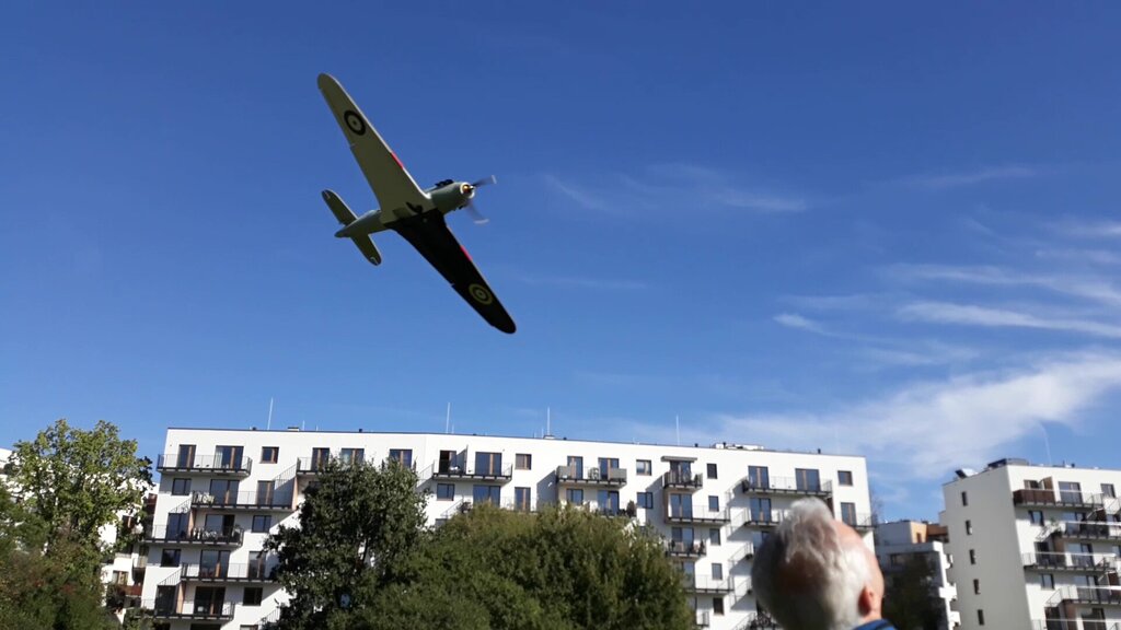 Dobry wieczór, No i Hurri poleciał w końcu, choć to za duzo powiedziane, bo pilot słaby i wiatr był, więc nie powinienem był... ale model przeżył;) lot był komediowy i 2 razy lądowanie na drzewie ( może to jakaś projekcja lotniskowca na kt ten akurat samolot służył..?). Jak się wyrobię to wrzucę filmik komediowy, na razie zrzuty z filmu. Mam nadzieję że przy lepszych warunkach się nauczę nim latać. Cdn. Pzdr, M -