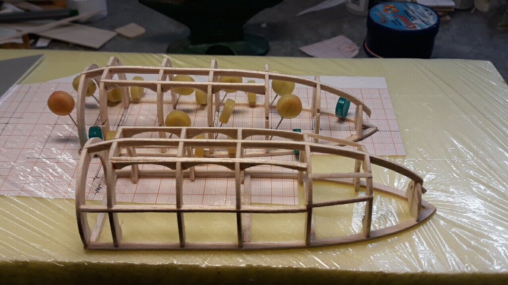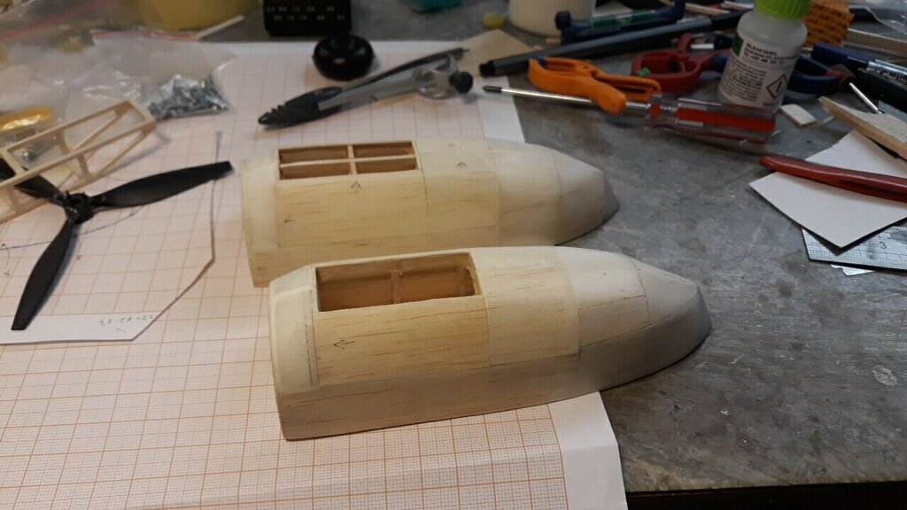 Dobry wieczór, Zbadałem możliwości wykonania okienek w tyle kadłuba i jednak będę pokrywał go folią (jeśli dostanę przezroczystą) - nie wiem jak zrobić tam ramki tak żeby ładnie współgrały z napiętym pokryciem. W oczekiwaniu na folię skończyłem kółeczko ogonowe i zabrałem się za gondole silnikowe. Robię je pierwszy raz i nie wiem jeszcze jak je pokryć balsą żeby wszystkie obłości wyszły ładnie, po wstępnej przymiarce myślę, że lagodne łuki pokryję balsą 0.6 a tam gdzie sie nie da dam wstawki z grubszej balsy albo pianki. Będę knuł. Cdn. Pzdr, M