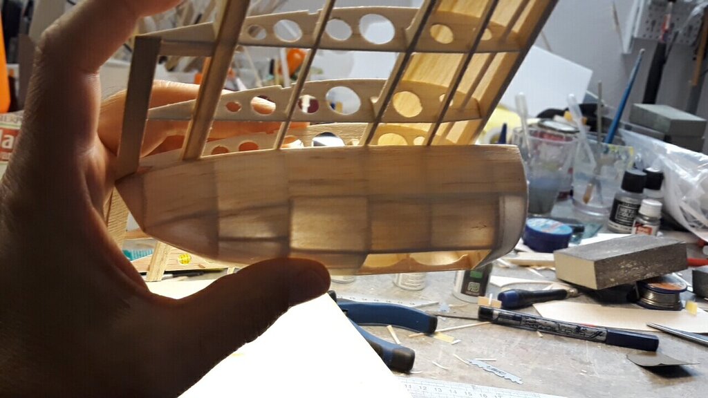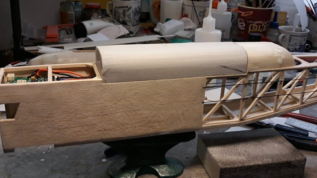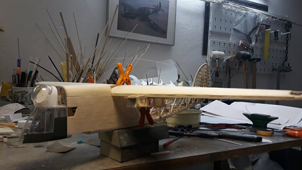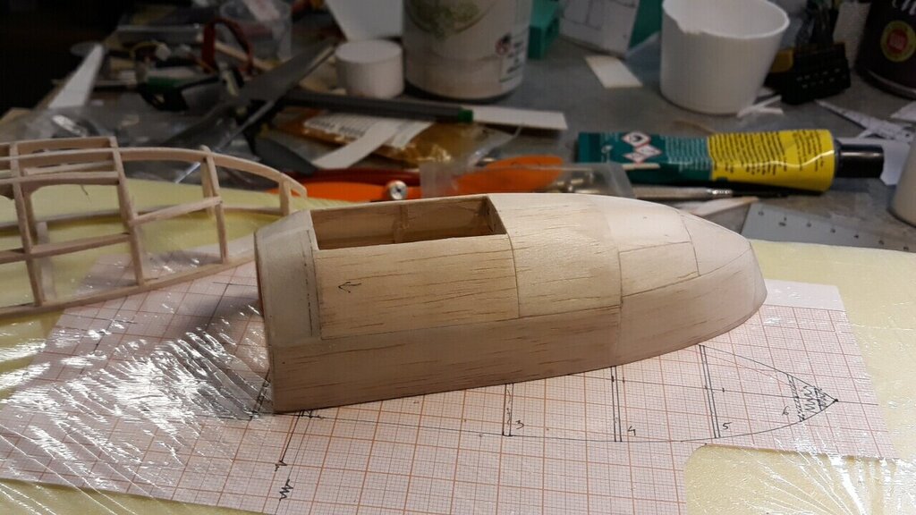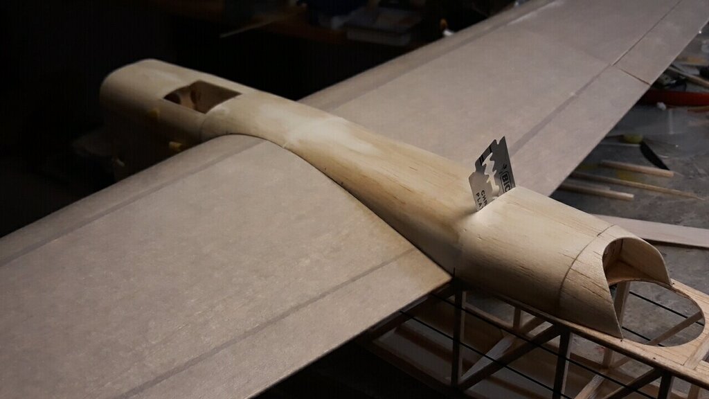 Dzięki! Z tą czystością to różnie, dziś to szlifowanie grzbietu kadłuba znowu mi pół piwniczki zasypało:( Trochę się w obliczeniach wysokości profilu pomyliłem i grzbiet trochę będzie wymagał dodatkowych zabiegów żeby pasował idealnie. W miejscu max wys płata wyszedł już tak cienki, że pianka właściwie wisi na balsie. Ale po przymiarce już lepiej widać kształt całości i widać kurczę jaki był masywny ten kadłub. Cdn. Pzdr, M