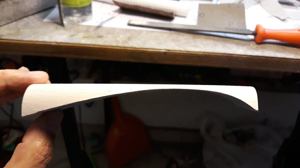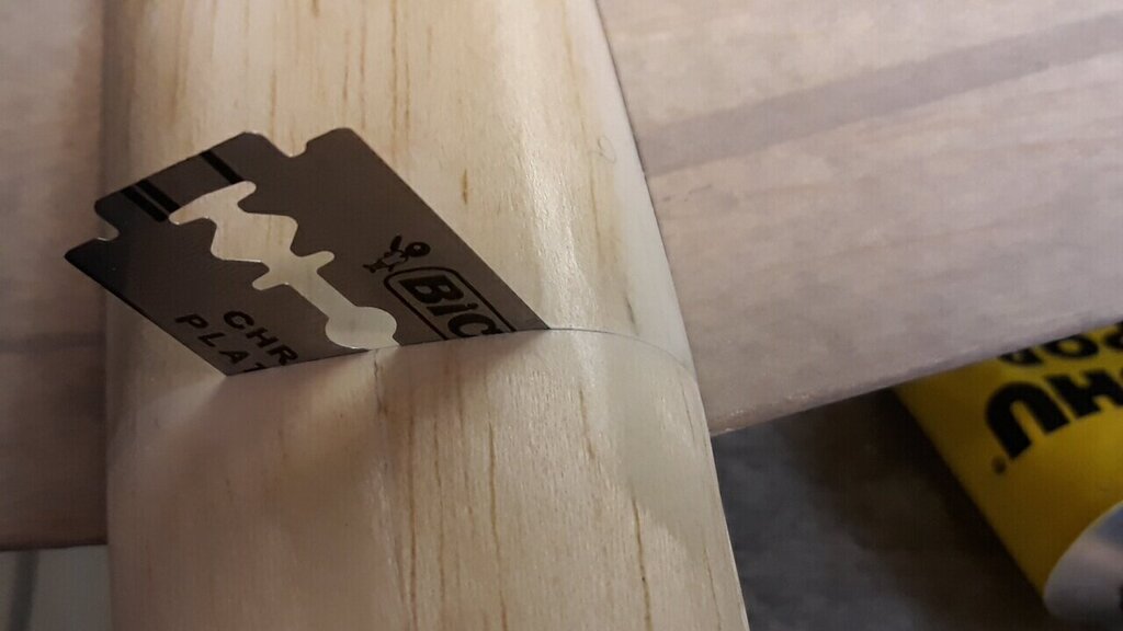 Dobry wieczór, Trochę to trwało ale skrzydełka oklejone już, wyloty bowdeników gotowe, trzeba brać się za lotki. Zrobiłem zgrubną wersję grzbietu kadłuba z pianki - profil skrzydła jest tak gruby że po wycięciu otworu na skrzydła będzie na pewno "wisieć" i pewnie będą trudności z wykończeniem - zobaczę jak to będzie wyglądać - znowu będzie walka. Na zdjęciach pokazałem też jak została przyciąte kraw natarcia płata (oraz ścięte z dołu żebra) patrząc od jego początku w kierunku zewn - dla osiągnięcia zwichrzenia aerod. Nie wiem jaki skutek to przyniesie ale mam nadzieję że nie zaszkodzì. "Wznios"płatów osiągnięty przez redukcję grubośco profilu ku końcówkom. Dolna pow płata ma wznios ok 3°. Cdn. Pzdr, M