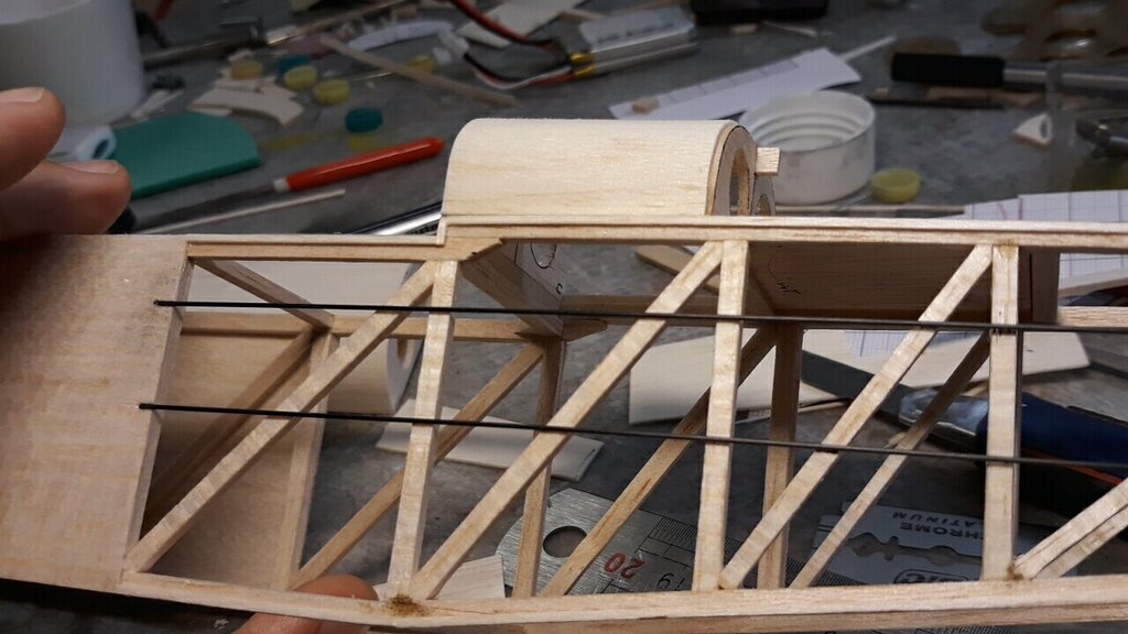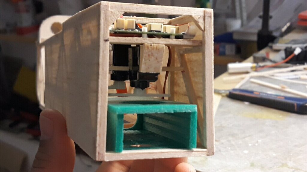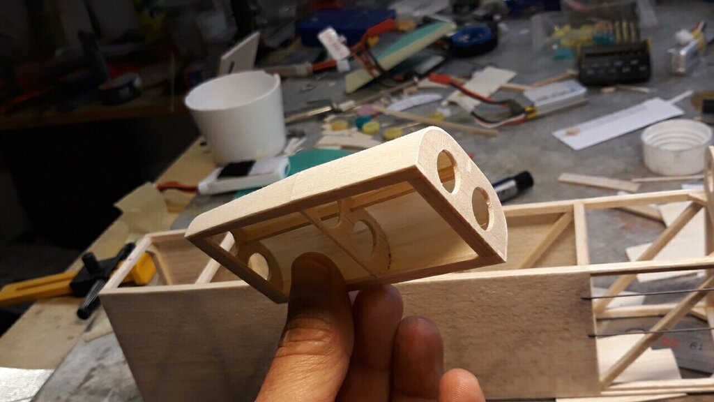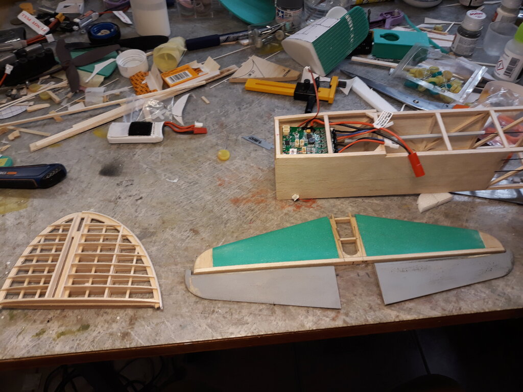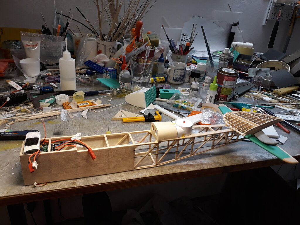 Wygląda super jak to u ciebie w labie!:) Ale teraz jak juz widać zamontowany silniczek i serwa to coś mnie tknęło o wyważenie, próbowałeś już trochę? Może się mylę, ale masz sporo ciężaru ( na oko!) za sc a przed nim tylko maska, kółeczka i 1/3 górnego płata, to cały tył powinien być max lekki. Myślę, że czas spróbować, choćby w przybliżeniu, i sprawdzić jak się modelik teraz wyważa. Pzdr. m -