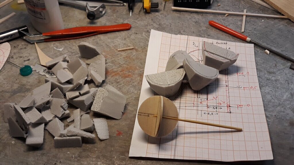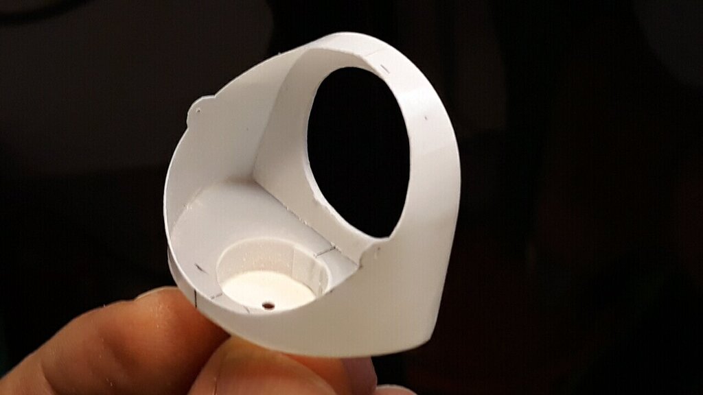 Dobry wieczór, Znowu utknąłem:( tym razem przy mechanice wieży. Myślałem, że (chociaż na wszystkich mi znanych zdjęciach wieża jest skierowana dokładnie na wprost) ta wieżyczka powinna się "normalnie obracać wg 2 osi, a tu wychodzi, że "kołnierz" wieży jak i jej podstawa musiałyby zahaczać o dość dokładnie opasujące ją poszycie kadłuba i wystawać poza linię kadłuba (widać to na zdjęciu podstawy wieży poniżej). Walka była i wykroiłem mnóstwo opasek na wieżę zanim się połapałem, że tu coś nie gra. Chyba w końcu jakoś tak przytnę podstawę żeby przynajmniej z 15 st sie mogła na boki wychylać, bo wierzyć mi się nie chce że oryginał mial wieżę obracaną tylko w osi góra-dół. Cdn. Pzdr. M