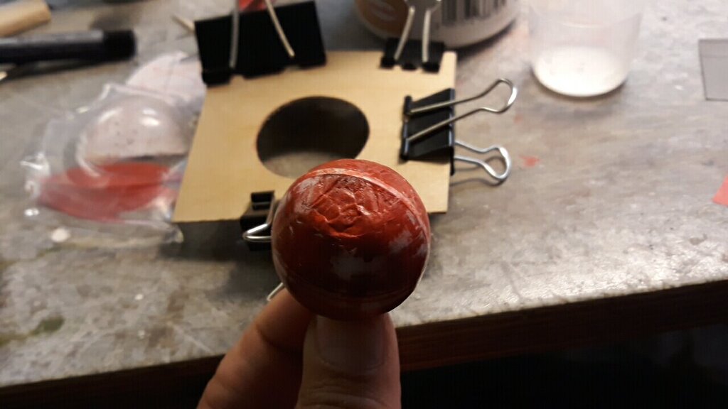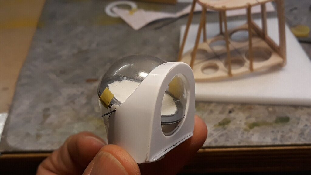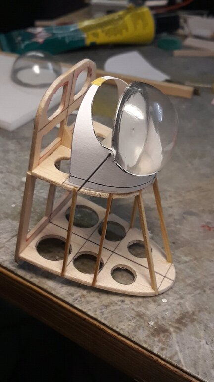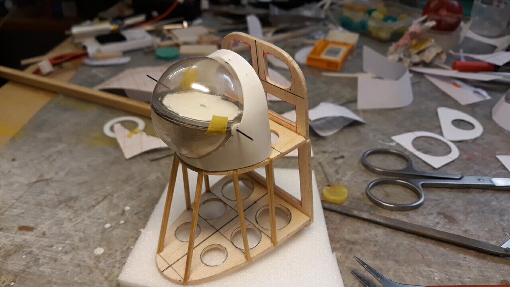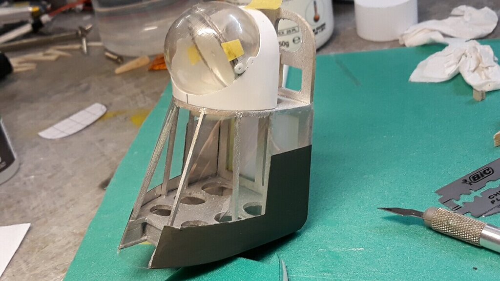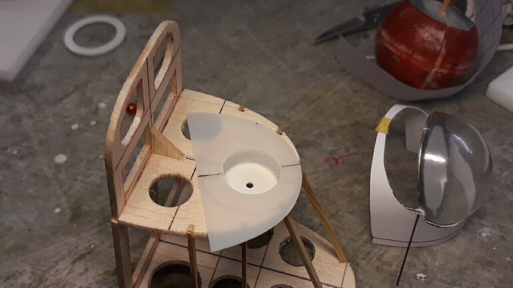 Dzień dobry, Z tymi obrotami wieży na boki to się słabo uda, ale trudno. W każdym razie obramowanie wieży jest, obraca się ładnie góra-dół i musi na razie wystarczyć. Ramki w kuli wieży pomalowałem, a środek (bialy okrąg wewnątrz) wyleci po zamocowaniu km-ów etc. Teraz czas na szklarnię dzioba. Cdn. Pzdr. M