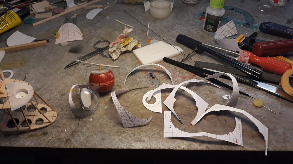 Dobry wieczór, Zrobiłem konstrukcję dzióbka a następnie chciałem zrobić wypraskę wieżyczki i tu zaczęły się schody.. Po pierwsze, zrobiłem kopyto z pianki (zalaminowane klejem i pap jap) i to był błąd bo oczywiście (teraz po fakcie! ) zaczęło się niefajnie odkształcać. Drugi problem to nagrzewanie plastiku - robiłem to nad płytą grzejną kuchni i nie szło to dobrze; jeden typ plastiku robił się mleczny, jeden za cienki.... ale każdy w czasie nagrzewania tak się gwałtownie kurczył, że kilka razy klipsy puściły:( może za szybko nagrzewałem? Ma stronie Mike'a Stuarta on ma przypięty (do deseczki z otworem na kopyto) arkusik plastiku zwykłymi szpilkami - kurczę u mnie to mam wrażenie, że wszytkie by plastik wyrwał podczas nagrzewania:( dziś zapasy plastiku skończone, będę działał dalej jutro. Cdn. Pzdr. M