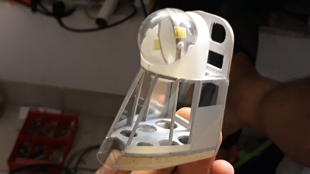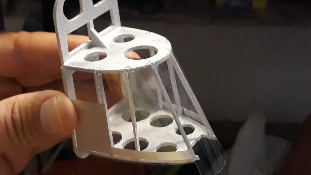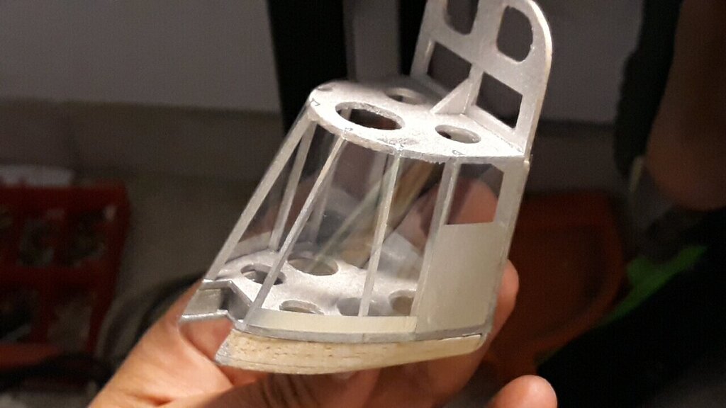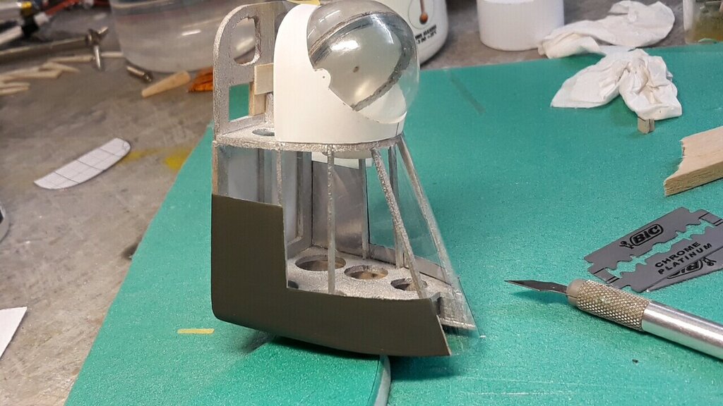 Dobry wieczór, Mam nadzieję, że już bliżej niż dalej z tym dziobem. Zrobiłem podłogę i pomalowałem całą ramkę dzioba. Pokrycie szklarni zrobiłem z b cienkiej folii (niewiadomego pochodzenia) bo plastik z sushi niestety robił się mleczny przy mocniejszym zginaniu:( ten jest b fajnie cienki i w miarę sztywny, ale jeden z tych co to do malowania jest koszmarny bo nic nie przylega. Dlatego od wewn strony tego plast poszycia nosa nakleiłem kawałki folii alu żeby środek szklarnii miał spójnie kolor alu i na podłodze i na ściankach. Teraz tylko wykombinować jak to wszystko ładnie pomalować (i obramować) z zewn. Mam pomysł taki żeby klejem do plast albo nawet caponem przykleić na boki arkusiki pap jap i malować; zrobię próby a jak sie nie uda do nałożę folię satynową ( oprócz okienek) i pomaluję. Zobaczymy jak to wyjdzie. Cdn. Pzdr. M