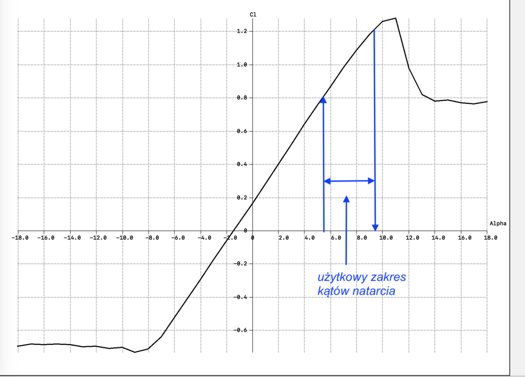 Zmienia się To daje profil płaskowypukły, który również ma o wiele większy współczynnik siły nośnej od KFm dla tego samego kąta natarcia, ale mniejszy od RAF 19. Moim przykładem chciałem zwrócić uwagę na problem zmiany prędkości po zmianie profilu i pokazałem jak to sprawdzić. Można zrobić porównanie z profilem CLARK Y co było już robione, lub z jakimś N XX, np N10 Dla alfa 0 st mamy Cl = 0,4, W tym przypadku KFm produkuje o 2,7 mniejszą siłe nośną niż Clark czy np. N10 Czyli jeśli na flite test lataliśmy z prędkością 12 m/s, to na KFm-3 musimy latać z prędkością prawie 20 m/s Taka dygresja - wiele osób na tym Forum oczekuje precyzyjnej odpowiedzi na swoje zadawane pytania. Często te pytania są tak ogólne, że najlepiej byłoby nie zwracać na nie uwagi, gdyż sensowna odpowiedź na nie jest wręcz niemożliwa. W lotnictwie i modelarstwie lotniczym każda zmiana ma swoje konsekwencje. O ile się coś zmienia, TO TRZEBA POLICZYĆ Przeliczyłem już kilka modeli na różnych profilach w tym i KFm Z wielu wyliczeń wynika, że optymalny kąt zaklinowania dla np. KFm-3 lub KFM-7 to +1,5 stopnia. Druga sprawa już nie zależna od rodzaju profilu, to użytkowy zakres kątów natarcia dla lotu modelu przy takim kącie zaklinowania skrzydła Popatrz na rysunek Zostaje raptem ok 4 stopnie - bardzo niebezpiecznie np. przy podejściu do lądowania.