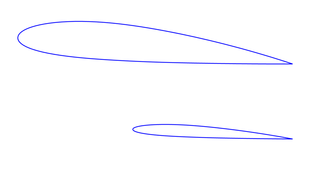 8. Próbowałem wpasować na plany jakiś profil. Takie efekty: Biorąc pod uwagę to, że najważniejsza część profilu to od noska licząć 25% 0 to najbliższy jest NACA 23015 Może kotoś znajdzie coś dokładniej wpisujące się. Bez dokładnej znajomości co to za profil - ciężko będzie wyliczyć dekalaż nawet wg wzoru z książki Schier'a EDIT: Wg planów, dekalaż geometryczny = 0 stopni, ale tak naprawdę chodzi o dekalaż aerodynamiczny Wykorzystam wzór z książki Schier'a Cmr = Cz*SM+Cmo Cz - współczynnik siły nośnej potrzebny do lotu - przyjmuje się maks =0,4, ale najlepiej przyjmować =0,35 SM (m z daszkiem) - zapas stateczności podłużnej - wg planów jest na 10%, czyli =0,1, do oblotu lepiej z przodu n 15%, czyli 0,15 Cmo - tutaj jest potrzebny profil, aby widzieć ile, każdy profil ma inne wartości Wykresy ze strony: http://airfoiltools.com/ Ah - można uzyskać z kalkulatora do wyliczania położenia SC - np ecalc cg Mamy Ah =0,40 - UWAGA (to dla tego konkretnego modelu) Kąt wzajemnego sklinowania skrzydła i statecznika poziomego (dekalaż aerodynamiczny) φ =Cmr/0,065*Ah*η η współczynnik skuteczności statecznika poziomego dla tego modelu można przyjąć =0,8 Podstawiam za Cmr = Cz*SM+Cmo SM = 0,1 - zapas stateczności podłużnej dla tego modelu z SC wg planów φ =(0,35*0,1 + Cmo)/0,065*0,40*0,8 I teraz wszystko zależy jaki mamy profil, aby oszacować Cmo: 1) dla NACA 23015 można przyjąć ok. 0,02 2) dla MB253515 już trzeba przyjąć ok. 0,06 przyjmujemy wartości bezwzględne Ad 1) φ =(0,35*0,1 + 0,02)/0,065*0,41*0,8 = 3,5 stopnia. Ad 2) φ =(0,35*0,1 + 0,06)/0,065*0,41*0,8 = 4,4 stopnia. To dekalaże aerodynamiczne Teraz geometryczne, czyli kąty zaklinowania skrzydła i statecznika poziomego 1) dla NACA 23015 - kąt zerowej siły nośnej wynosi ok. -1,8 stopnia przyjmując statecznik zaklinowany na zero, to skrzydło powinno być zaklinowane na kąt: 3,5 - 1,8 = 1,7 stopnia 2) dla MB253515 - kąt zerowej siły nośnej wynosi ok. -2,5 stopnia przyjmując statecznik zaklinowany na zero, to skrzydło powinno być zaklinowane na kąt: 4,4 - 2,5 = 1,9 stopnia Tutaj nie wiemy jaki jest profil, coś w zbliżonego do NACA 23015 Zaznaczone położenie SC na planach (już pisałem) jest dla SM=10% (zapas stateczności podłużnej) Ja wolę do oblotu SM=15% czyli SC bardziej z przodu. Sądzę, że można skrzydło zaklinować na: maks +2 stopie, min. +1,5 stopnia, statecznik poziomy na 0 st. Reasumując: 1) Albo robimy tak jak w planach - wierząc planom, albo 2) Obliczamy. Podpytywanie kolegów - działa, jeśli wiemy o co zapytać, aby wiedzieć co dokładnie kolega zmienił. To co podałem tutaj - to podstawa projektowania modelu.
