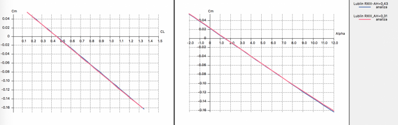 "Powiem" tak - nie jest mi do niczego potrzebne wiedzieć, czy to jest Cm0,25 czy inny - dobierając profil oceniam jego charakterystyki pod kątem jego przeznaczenia, np: model o dużym Stabilizer Volume (powyżej 0,45) nie zastanawiam się nad Cm za bardzo, ale np. Lublin, który robi Kesto, to już Cm profilu, jest jednym z głównych kryteriów, podobnie przy latającym skrzydle. Istotne jest jaki będzie przebieg Cm od alfa, lub Cm od CL dla całego modelu. Traktuję XFLR jako dobre liczydło do obliczeń aerodynamicznych i tyle. Jak na razie mi się sprawdza. XFLR ma wiele fajnych i użytecznych rzeczy, np. podaje wykres mocy minimalnej do utrzymania lotu poziomego. Andre i wiele innych twierdzi, że jest to głównie dla tych co projektują motoszybowce, aby dobrać jak najlżejszy silnik.