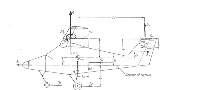Zaraz będzie z tego doktorat. Na tendencje do myszkowania ma wpływ jeszcze: - drgania Shimmy; - wyprzedzenie osi skrętu koła ogonowego, i wiele innych Położenie SC jest uwarunkowane wymiarami skrzydła i statecznika poziomego, a wyprzedzenia SC przez podwozie główne (pisze o tym Shier i Gordon Białogłowy), podają chyba kąt wyprzedzenia (nie pamiętam dokładnie) - Ale jeśli robisz makietowo, to ... Rozwiązanie problemu już padło (zbieżność kół podwozia głównego) Co jeszcze pomaga? Kółko ogonowe niesterowane, lub sterowane osobno (nie napędem od steru kierunku) ale silnym serwem, które wytrzyma wychylenia od nierówności podłoża. Robi się mix dla takiego serwa: - w położeniu, podwozie wysunięte - pracuje wraz z serwem steru kierunku, - po przełączeniu podwozia na chowanie: centruje się i wychylenia ma ustawione na zero do momentu przełączenia na wypuszczone. Pewnie są jeszcze inne tricki.
