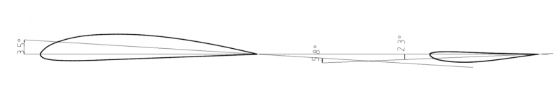 Temat może być pomocny dla osób, które same projektują modele, ale również dla osób, które mają problem z regulacją modelu. Co to takiego dekalaż, czy też kąt wzajemnego sklinowania (jak to napisał Schier)? Możemy wyróżnić dwa rodzaje dekalażu: - aerodynamiczny jako "sumę" kątów zerowej siły nośnej profilu skrzydła i statecznika poziomego. - geometryczny jako sumę kątów linii cięciw. Przy obliczeniach aerodynamicznych używamy dekalażu aerodynamicznego, natomiast przy regulacjach i sprawdzaniu gotowego modelu, używamy geometrycznego. Należy pamiętać, że obliczenia wykonujemy dla średnich cięciw aerodynamicznych (SCA), dlatego jeśli robimy zwichrzenie skrzydła, to musimy znaleźć właściwe kąty do pomiaru) Dekalaż aerodynamiczny wg Schier'a i wzór na wyliczenie tego kąta: Proszę zwrócić uwagę na gwiazdkę - czyli wzór ten jest słuszny jeśli SC modelu jest na wysokości środka aerodynamicznego SCA skrzydła, jeśli nie trzeba go odpowiednio zmodyfikować. Aby nie wyjaśniać symboli we wzorach Schiera załączam część książki miniaturowe lotnictwo czIII.pdf Teraz kilka rysunków obrazujących problem Dekalaż geometryczny Tu jest jest skrzydło zaklinowane na 0, a statecznik na -2 stopnie. Dekalaż geometryczny = 2 stopnie Skrzydło na powyższym rysunku ma profil Clark Y Zerowy współczynnik siły nośnej dla Clark Y = -3,5 stopnia kąta natarcia. Czyli dekalaż aerodynamiczny wynosi 5,5 stopnia. Podobny dekalaż aerodynamiczny można uzyskać przy zaklinowaniu obu powierzchni na zerowy kąt, zmieniając np profil statecznika poziomego. Oba profile zaklinowane są na zero, ale dekalaż aerodynamiczny wynosi 5,8 stopnia. Taki układ jest np w L-410 lub współczesnych samolotach pasażerskich i transportowych, ktoś mi kiedyś podesłał fotkę małego samolotu z takim układem profili Czasem czytam na Forum: "... ten program coś nie za dobrze liczy SC" Wszystkie programy z sieci liczące położenie SC podają je na podstawie wymiarów geometrycznych modelu, bez uwzględnienia rodzaju profili. Jeśli nie popełniliśmy pomyłki wpisując wymiary do programu wyznaczającego SC, to wyliczył go poprawnie. Problem z trymowaniem wynikać może ze źle dobranego dekalażu. Gordon Whitehead moim zdaniem podaje zbyt daleko idące uproszczenie dla kątów zaklinowania, ono jest słuszne, dla pewnej grupy profili oraz zastosowanego zwichrzenia skrzydła, oraz dla normalnego współczynnika wielkości statecznika poziomego. W tym wątku pokazano programik do sprawdzania dekalażu geometrycznego. http://pfmrc.eu/index.php/topic/77207-k%C4%85ty-natarcia-w-modelu/?do=findComment&comment=726176 C.d.n. o ile będzie taka potrzeba