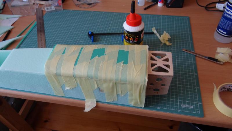 W końcu zabrałem się za wykonanie kabiny. W pierwszym kroku wykonałem wzór z depronu a następnie wyciąłem z deski cztery takie same elementy. Po sklejeniu i oszlifowaniu otrzymałem gotowe kopyto. Później kopyto włożyłem do butelki po 2 litrowym napoju i za pomocą opalarki uformowałem kabinę.- 55 odpowiedzi