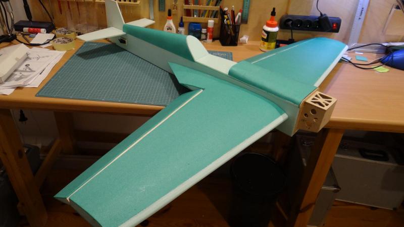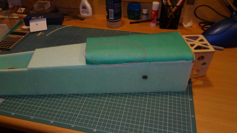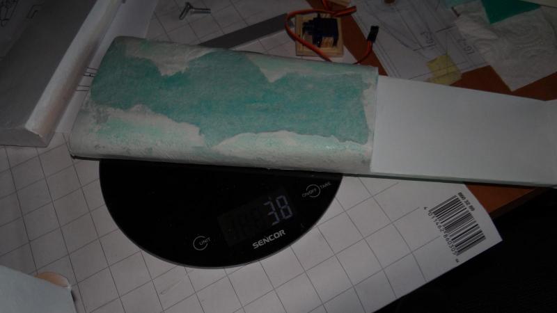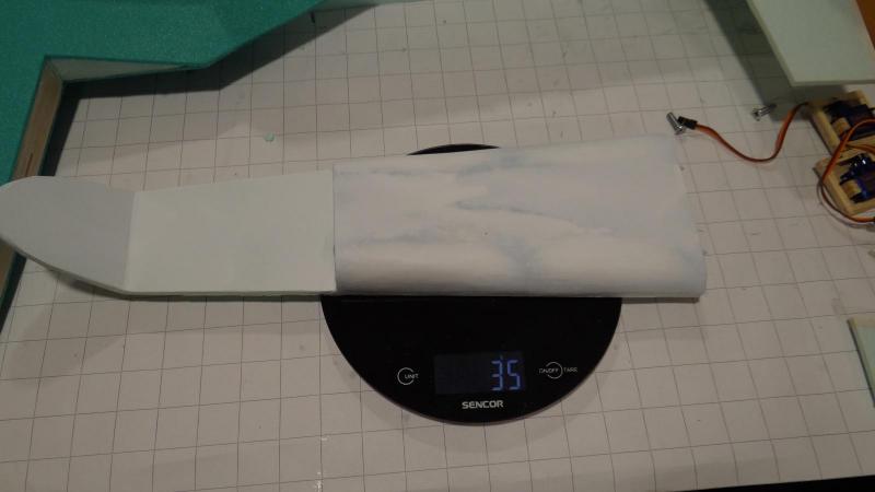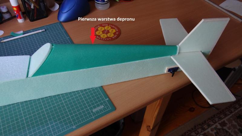 Jeszcze parę zdjęć z postępu prac. Niestety nie wszystko wyszło idealnie. Troszkę się zniekształcił depron, prawdopodobnie przez zbyt mocno naciągniętą taśmę podczas klejenia. Miejsce deformacji zaznaczyłem czerwoną liną. Zniekształcenie wynosi około 1,5 milimetra. Myślę, że będę musiał to wyszpachlować...- 55 odpowiedzi