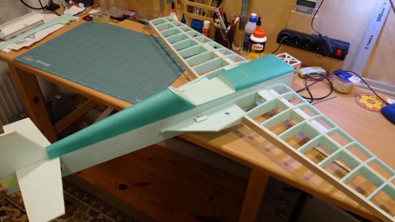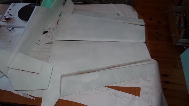 Wrzucam jeszcze parę fotek z montażu skrzydeł. Zaczyna mnie jedynie przerażać waga. Obecnie wszystko co wykonałem waży 567g.- 55 odpowiedzi