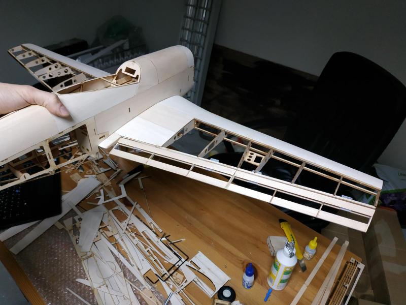 Z mustangiem na razie nic nie ruszyło, zająłem się budową tego trenerka i tak mnie jakoś wciągnęło że dopiero będę w weekend próbował startu trenerkiem górnopłatem bo w ten weekend ciągle padało. Zobaczymy czy w ogóle coś z niego będzie haha jak tak to wrzucę relacje i zajmę się dokończeniem mustanga. -