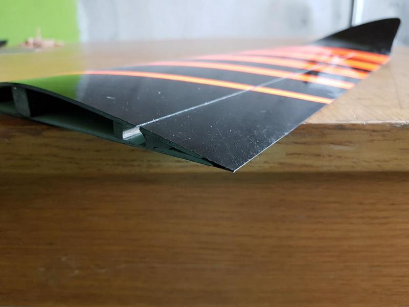 Kąty skrzydła są takie same ustalone przez kadłub. Jeśli chodzi ci o wznios to jest słuszna uwaga, ponieważ oryginalnie skrzydła są giętkie, na ziemi phoenix nie ma żadnego wzniosu natomiast po starcie wznios robi się samoczynnie uginając skrzydła. Dlatego pierwsze testy z zerowym wzniosem nie były dość zadowalające ze względu na to że skrzydło węglowe jest niesamowicie sztywne, po prostu model tracił stabilność przy bardzo niskich prędkościach. Zostało to poprawione. -