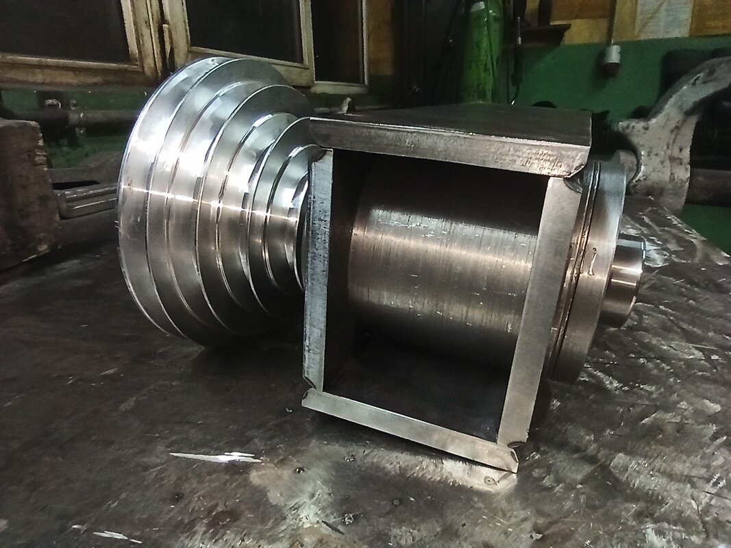Powoli powstaje wrzeciono. Pierwsze toczenia za mną. W następnym etapie muszę wytoczyć dekielki wrzeciona. Dekielek od strony narzędzi (na rysunku górny) będzie składany z dwóch części.