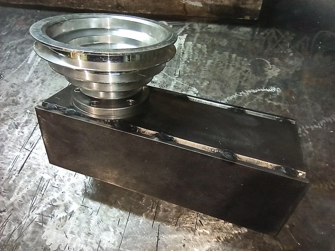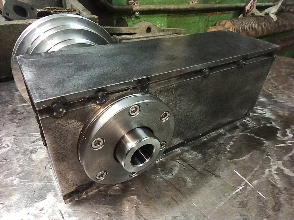 Troszkę czasu minęło, ale prace powoli posuwają się dalej. Ostatnio pofrezowałem na wymiar (na tokarce) elementy ramienia wrzeciona. Ramię będzie spawane z płaskowników gr. 10mm i będzie miało w przekroju wymiary 115x90mm. Po obróbce na wymiar elementy zukosowałem w miejscach do spawania. Z przodu całość ma być zamknięta przykręconym śrubami wpuszczanym dekielkiem. Miałem to zrobić tak, że po spawaniu miałem rozwiercić do końca te częściowo nawiercone na fi95mm otwory. Następnie w nich chciałem umieścić wrzeciono i całość od środka przyspawać. Ale tak sobie myślę, czy nie byłoby lepiej nie wspawywać wrzeciona na stałe a może lepiej po wpuszczeniu w otwory fi95 przykręcić wrzeciono z czterech stron do korpusu ramienia - tak, jak widać to mniej więcej na moim prowizorycznym rysunku - sorki, ale nie opanowałem rysunków w 3D. Myślę że byłoby to bardziej uniwersalne rozwiązanie (w razie potrzeby możliwość ew. wymiany wrzeciona). Obawiam się tylko utraty sztywności takiego rozwiązania. Co o tym myślicie? Propozycja przykręcanego śrubami wrzeciona. Wewnątrz korpusu byłby dekielek wspawany i do niego byłoby przykręcane wrzeciono (nie widać tego na zdjęciu).