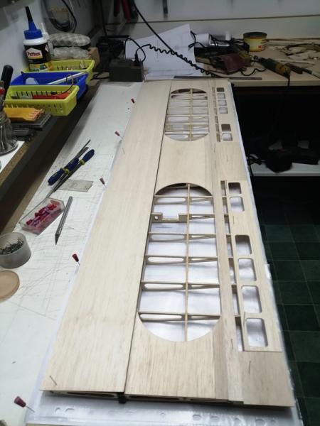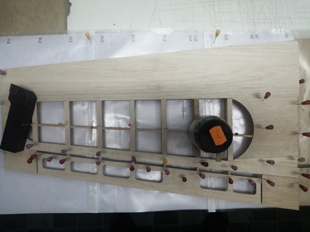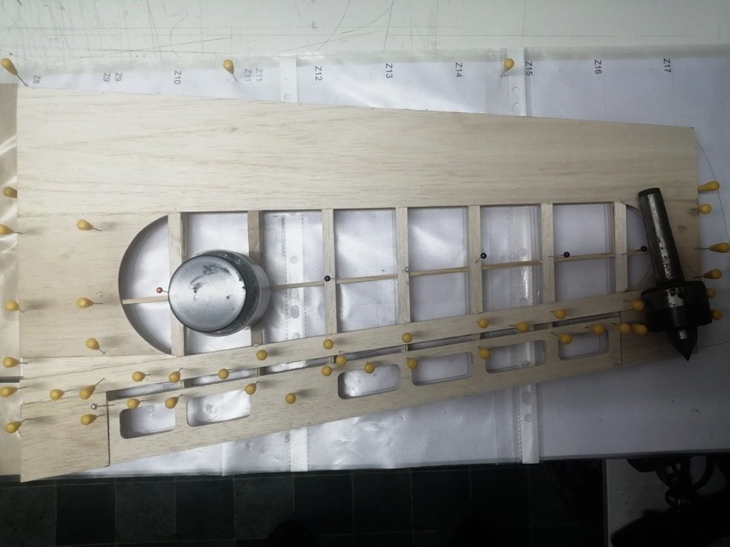 Ostatnie wzmocnienia wklejone. Całość częściowo przeszlifowana. Teraz po wyschnięciu kleju jeszcze drobne szlify i można będzie wklejać balsowe poszycie.