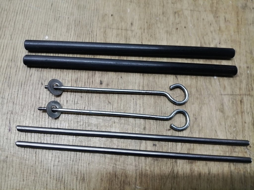 Dalsze prace. Wklejone bagnety pomocnicze z drutu stalowego fi 3mm, rurki węglowe bagnetów głównych oraz wklejone wzmocnienia w wrażliwych punktach uszu.?.