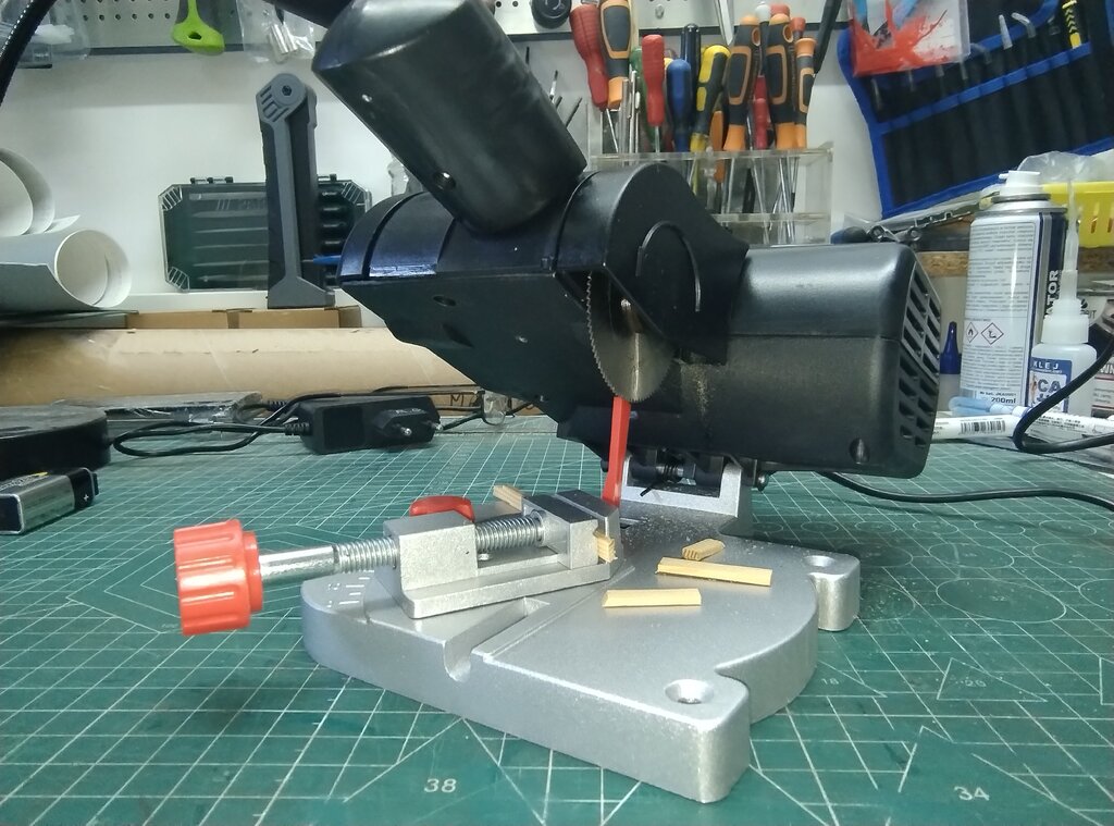 Kupiona na jednym z portali. Np. coś takiego: https://a.aliexpress.com/_EGjOFY5 Chodziło mi głównie o coś do cięcia np. rurek i prętów met. do modeli. Ręczne mini szlifierki ciężko jest tak idealnie równo utrzymać. Ta spokojnie sobie radzi - wiadomo, musi być założona tarcza do cięcia metalu.