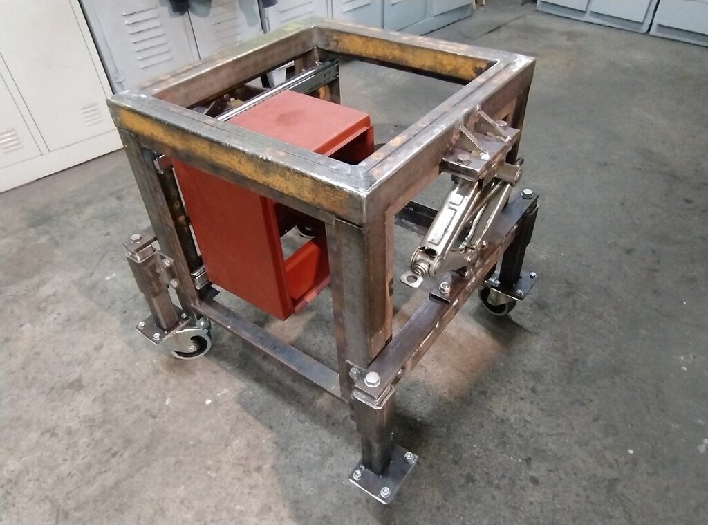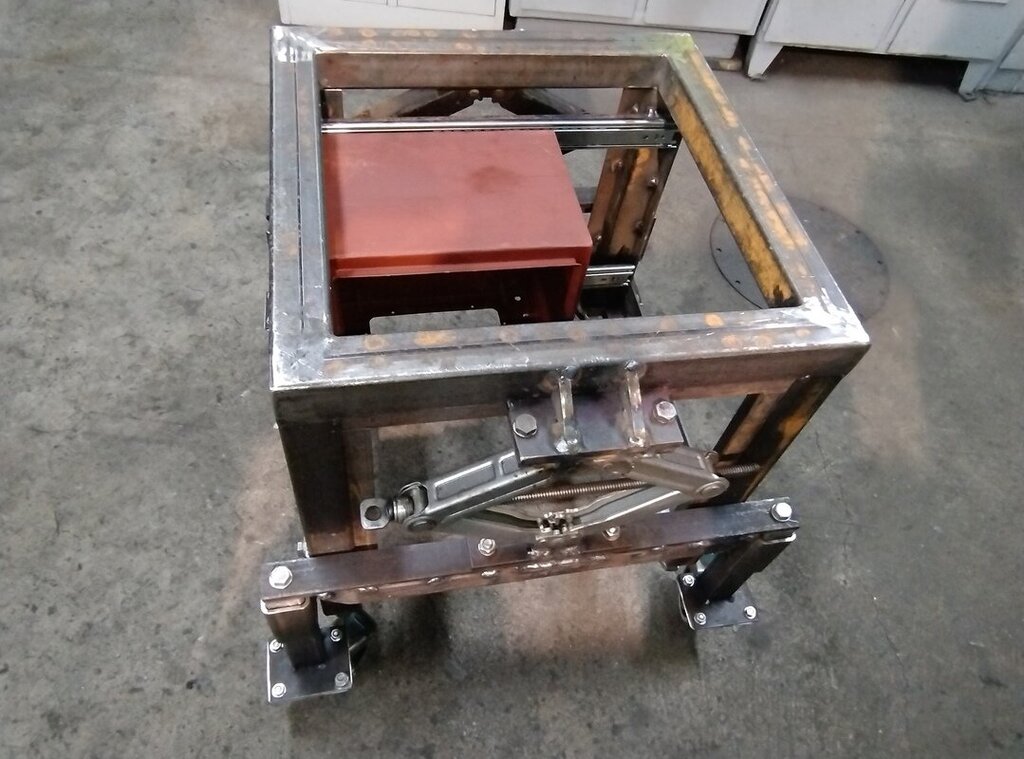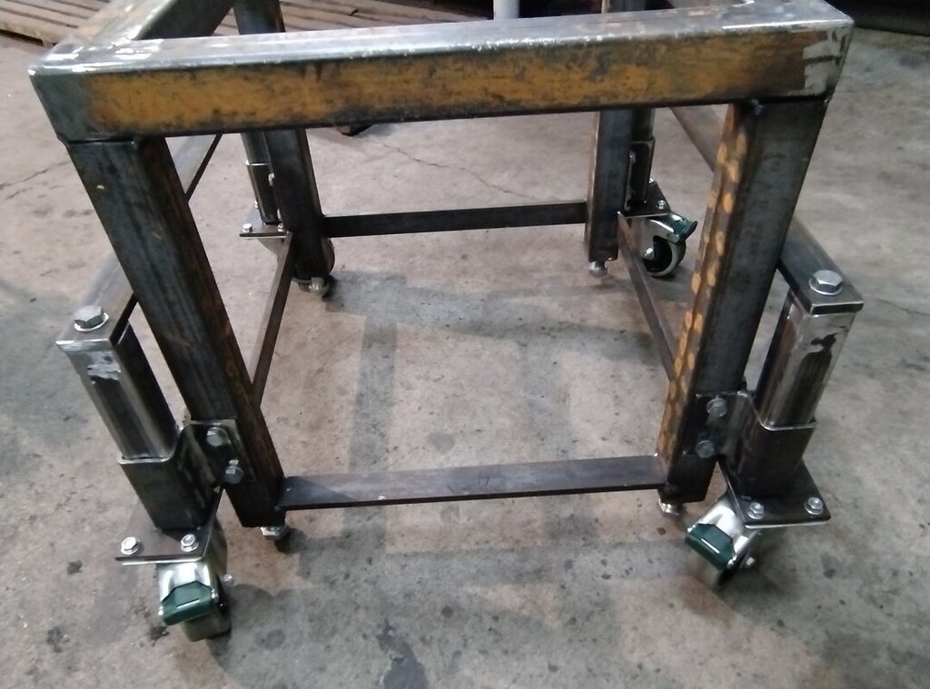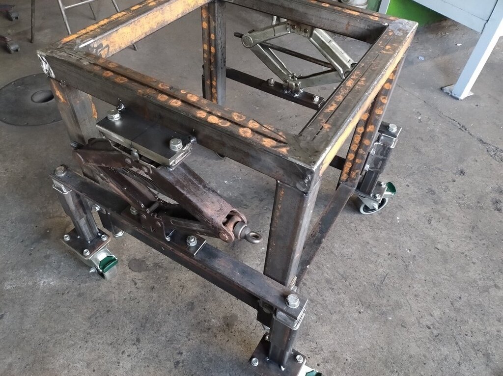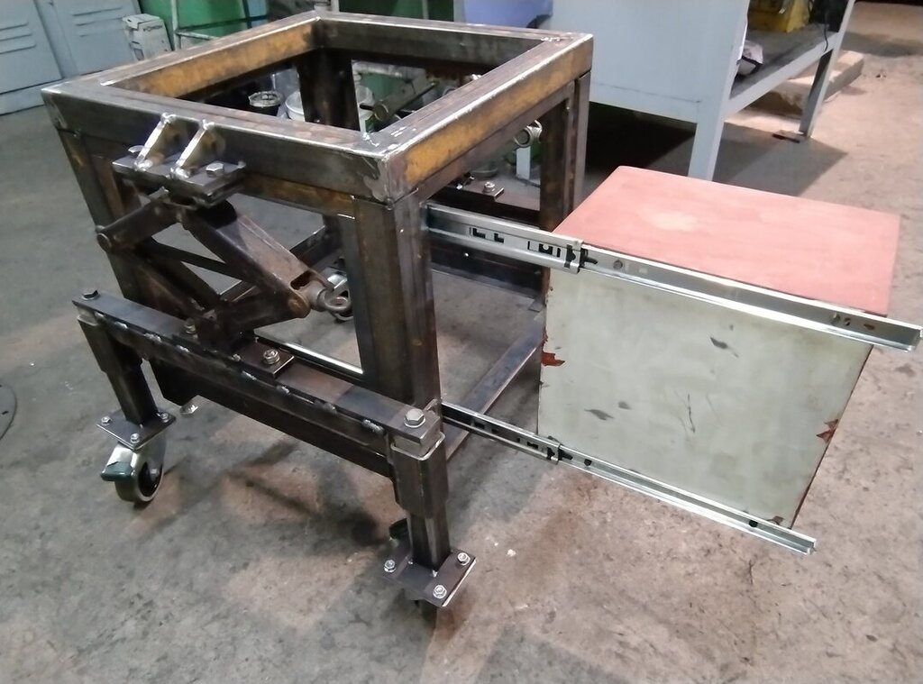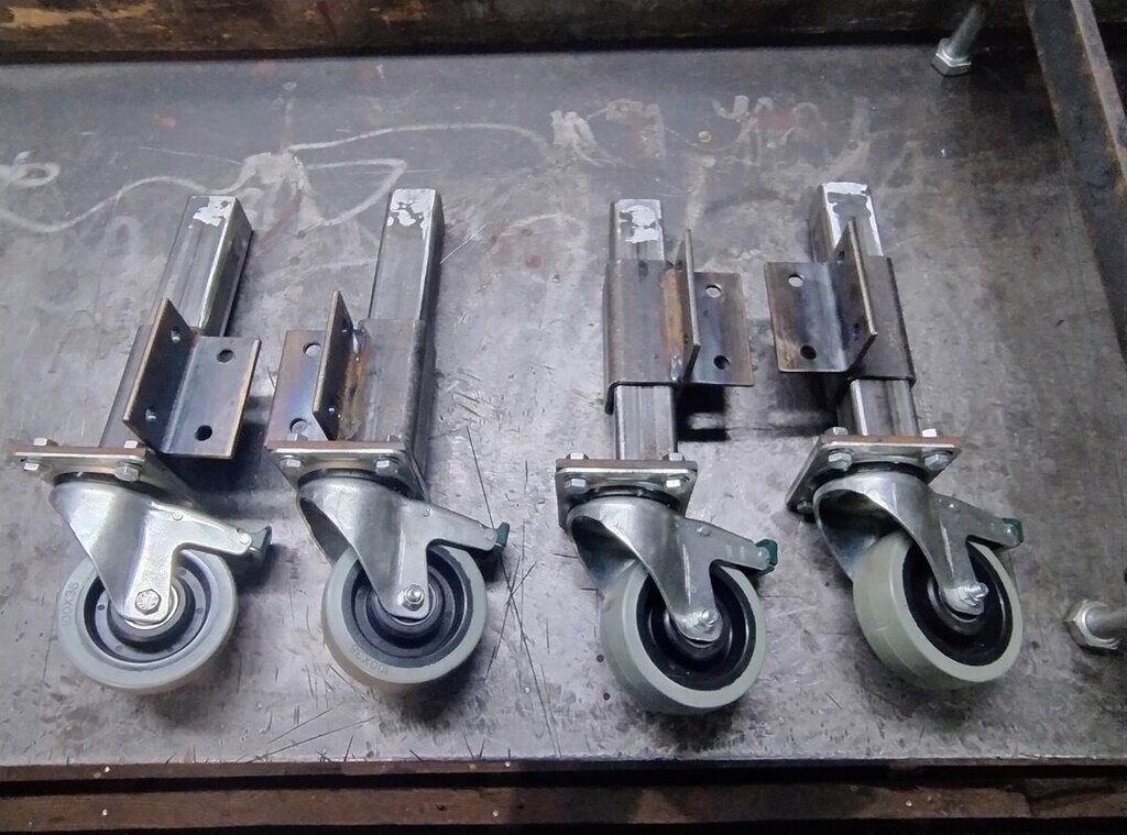 WITAM po przerwie. Aby nie było, że w temacie szlifierki nic się nie działo. Zdjęcia pokażą co i jak. Tak więc szlifierka otrzymała obiecane osłony przed iskrzeniem. Na ukończeniu jest też stolik pod szlifierkę. Stolik docelowo może stać na wkręcanych (regulowanych) stopach. Do przestawiania można opuszczać kółka za pomocą lewarków samochodowych i przestawić stolik, lub też tak pracować - koła są z hamulcami. Pozostało w zasadzie jeszcze wykonać oblachowanie szafki, uzupełnienie spawów, Wykonanie drzwiczek z przodu stolika, szlifowanie (oczyszczenie) i malowanie. Zakupiona na punkcie skupu złomu skrzynka elektryczna została trochę rozciągnięta (wspawane paski blachy). Ciężko było dopasować skrzynkę z odpowiednią głębokością i jednocześnie aby mieściła się w stoliku szlifierki. Skrzynka będzie wysuwana na zewnątrz na zwykłych szufladowych prowadnicach kulkowych. Sterowanie będzie z osobnego zewnętrznego panelu sterującego. Wykonałem też płytę czołową zewnętrznego panelu sterowania. W panelu z lewej strony w dodatkowej, zamykanej osłonie hermetycznej znajduje się dodatkowy, zewnętrzny manipulator sterowania falownikiem a nad przyciskiem wyłącznika bezpieczeństwa wyświetlacz indukcyjnego wskaźnika obrotów silnika napędowego. Panel będzie zamontowany na regulowanych ramionach tak, aby dowolnie do własnych potrzeb można byłoby ustawiać położenie panelu. No i oczywiście wstępne projekty naklejek. Niebieska naklejka będzie umieszczona na górnej osłonie z przodu szlifierki. Cdn.
